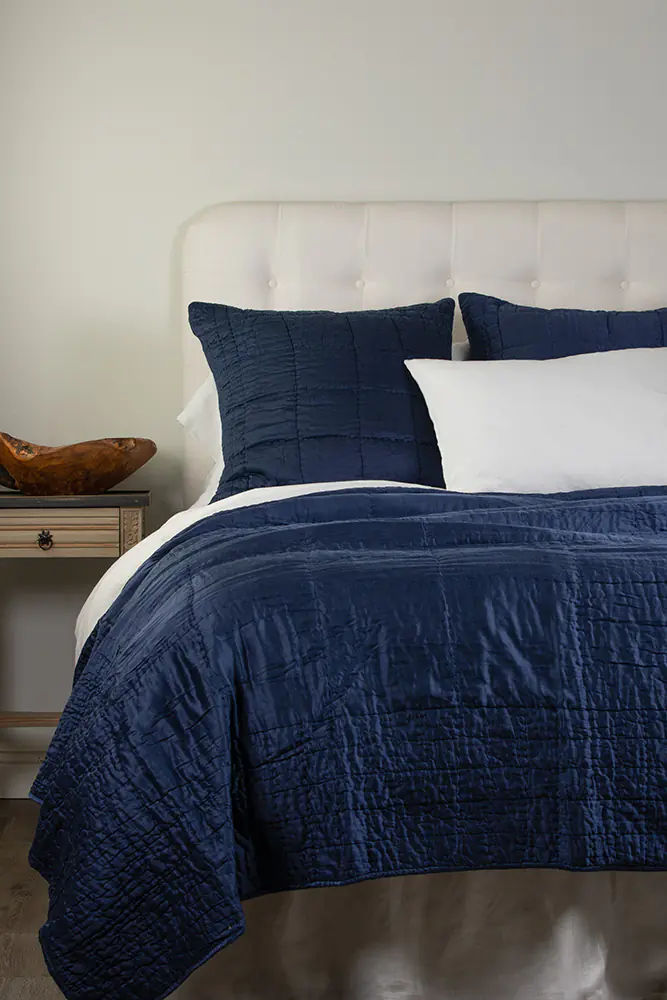 The Cash Quilt Indigo is an ideal starting point for those who prefer clean lines, modern architecture, and the like. The Cash Quilt Indigo features a modern, best-selling grid style pattern and takes the “traditional blue blanket” to a higher level by incorporating both texture and geometry.