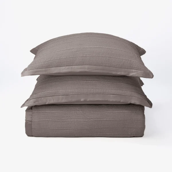 Amity Home Clement Duvet Cover Set in Taupe Striped - Vertical Striped Design