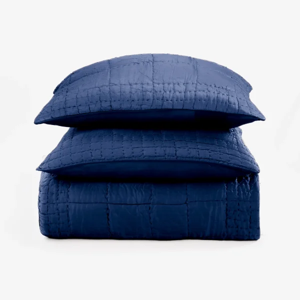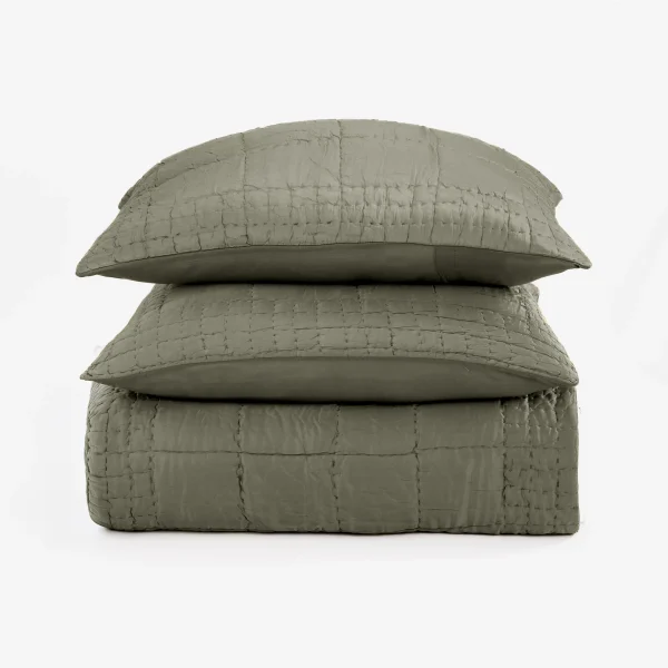Amity Home Claudia Quilt in Cypress - Textured Block Quilting