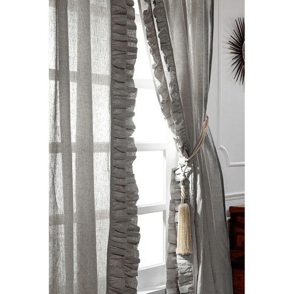Basillo Linen Curtains, Platinum Grey Pair, 96″