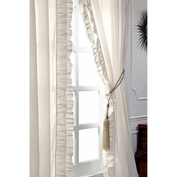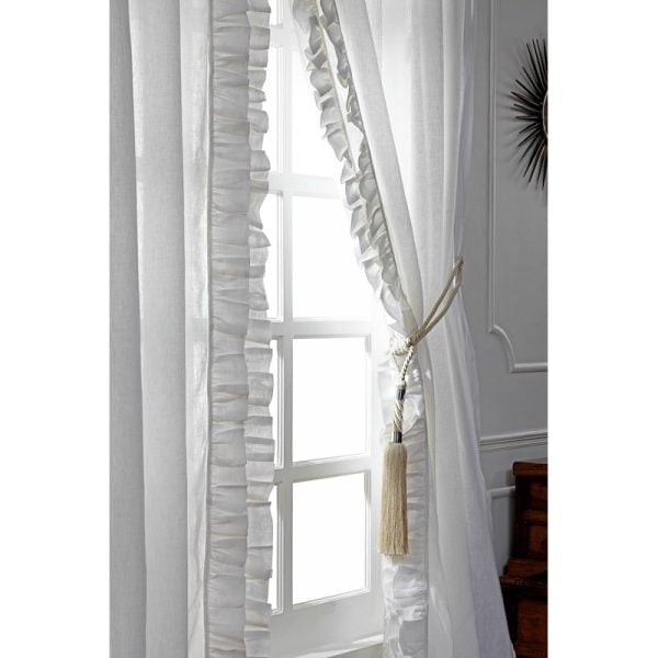 Basillo Linen White Linen Curtains, White Pair, 96″