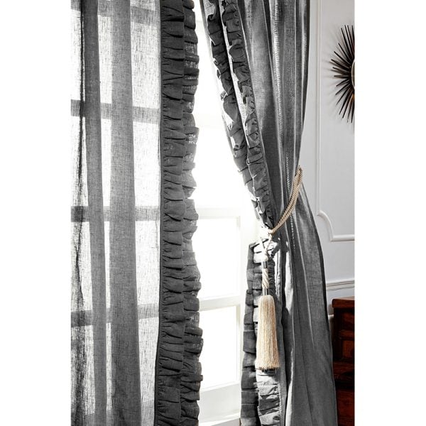Basillo Linen Curtains, Asphalt Pair, 96″