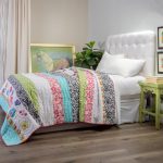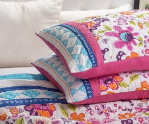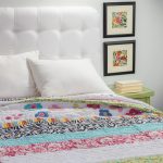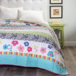 Handmade Patchwork quilt using an assortment of fabrics and some of the fabrics are individually made by adding ruffles on it. A fun quilt for any girls room. Enhance the bed by adding Save the planet, Jane and Yo Yo Pillow. 3 Layer bedskirt has 18 drop with split corners. The other quilt on the bed is called Jane (with flowers on white background) and can found on our site as well.