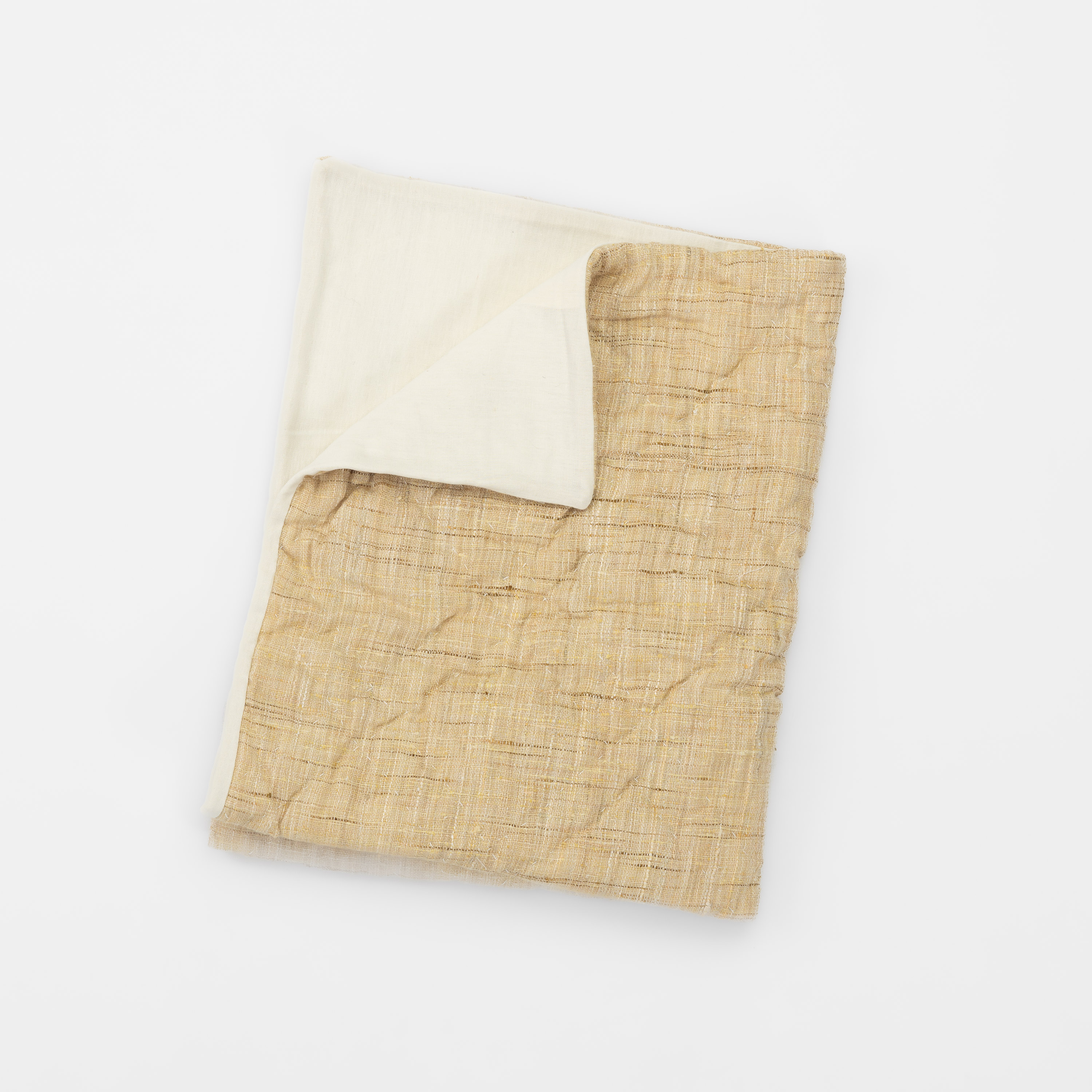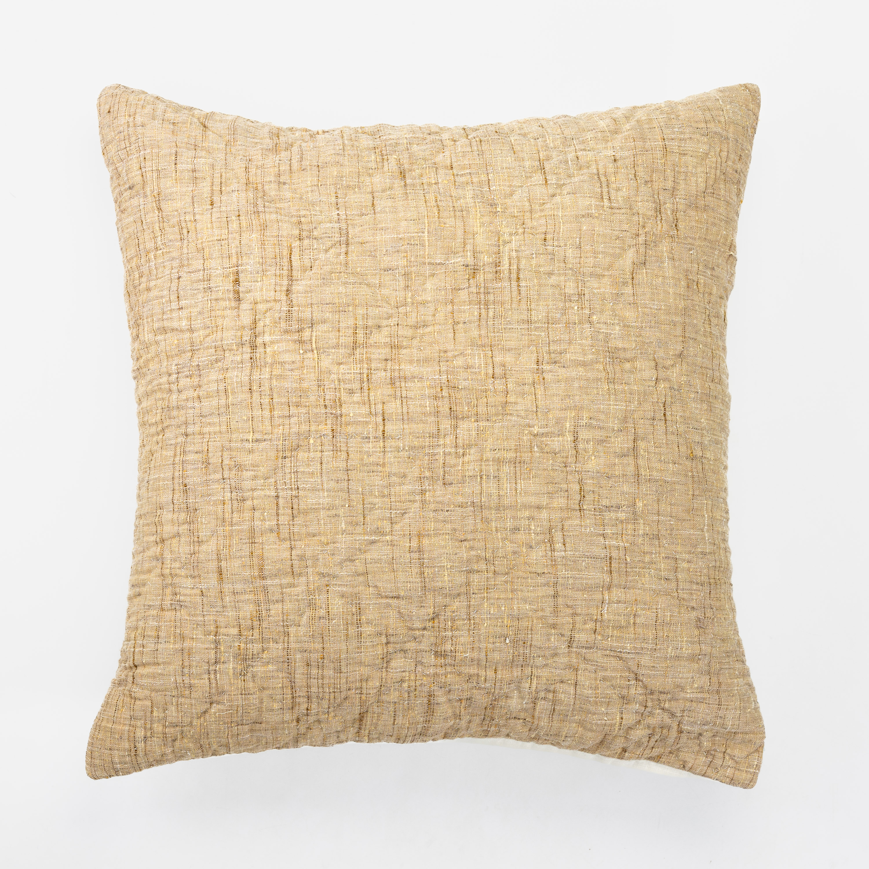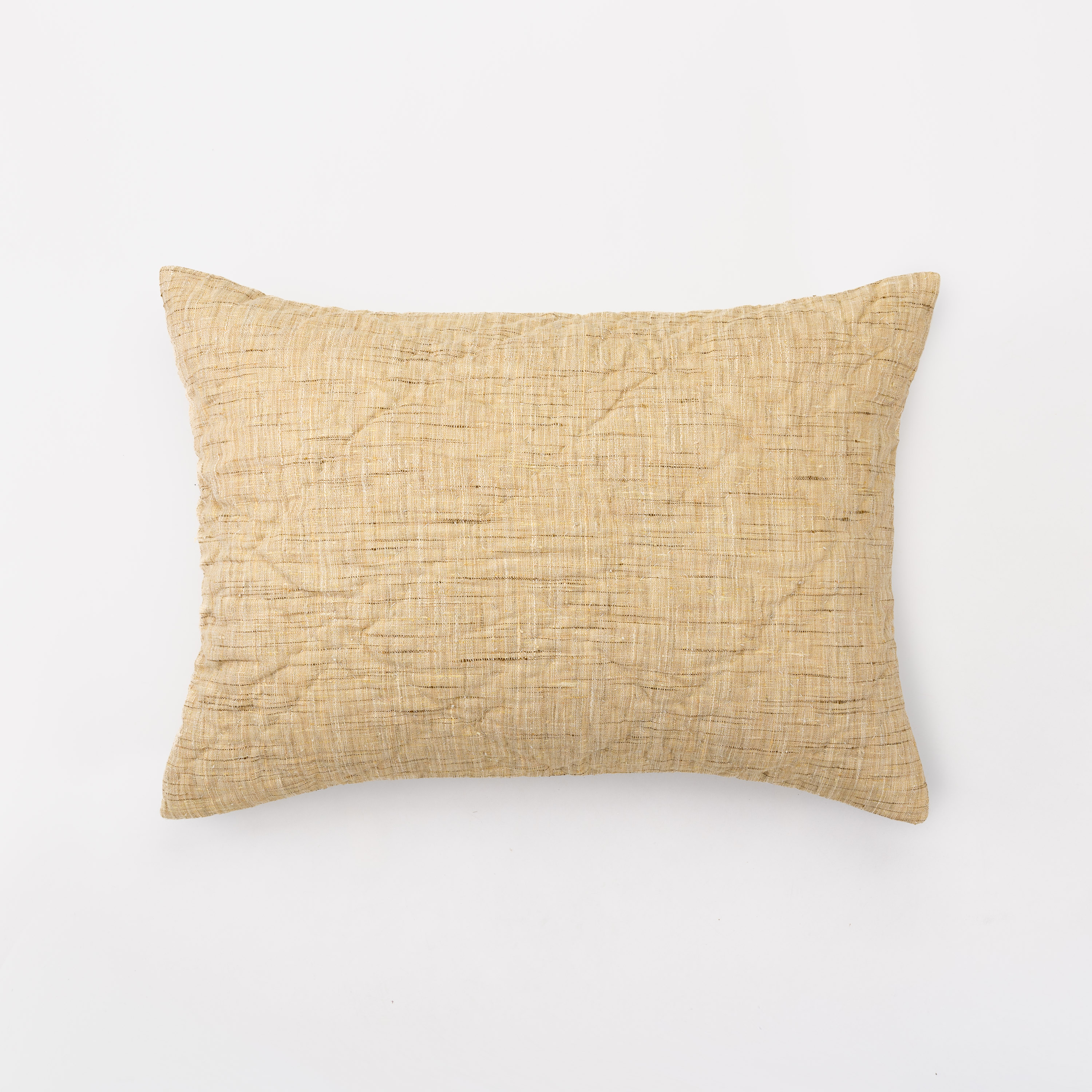 This quilt is crafted from fabric made with recycled yarn, embracing a commitment to sustainability without compromising on quality. The texture and visible slubs are natural characteristics of the yarn, adding depth and a unique, organic look to each piece. It is hand-quilted in a refined double diamond pattern and finished with contrast piping for a touch of tailored elegance. The quilt itself is not recycled, but the use of recycled yarn makes it an environmentally conscious addition to your bedding.