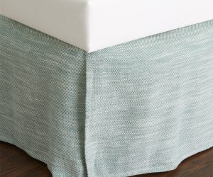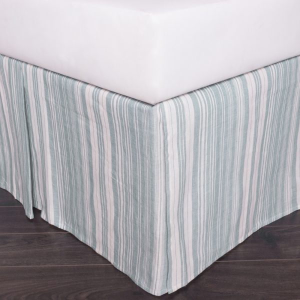 Multi-width Seaglass and Iovry stripes add dimension to this tailored bed skirt with pleats. Bed Skirt comes as 3 Panels, in drop length + 3 inch deck, and may require pins ( Pins are not included) Sizes