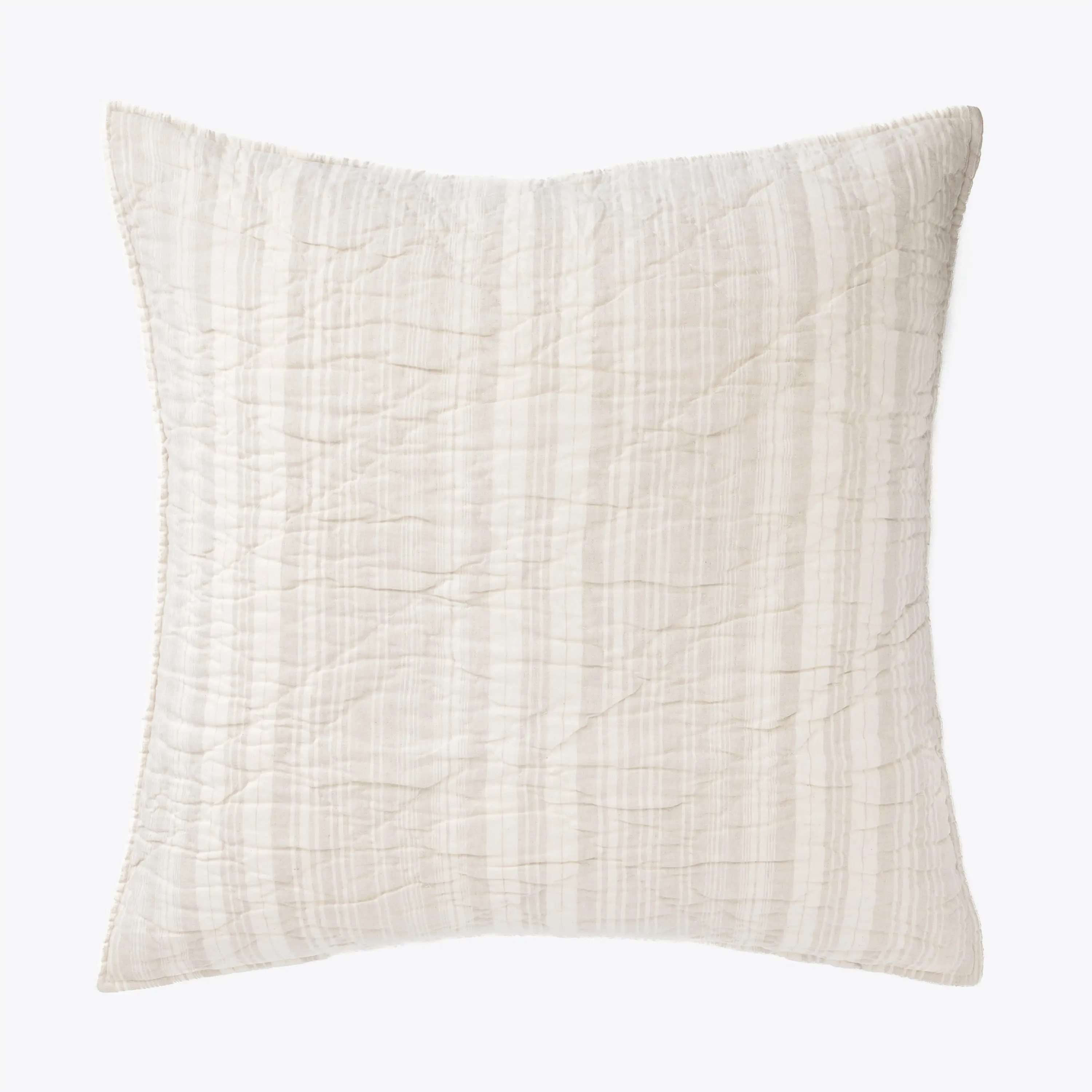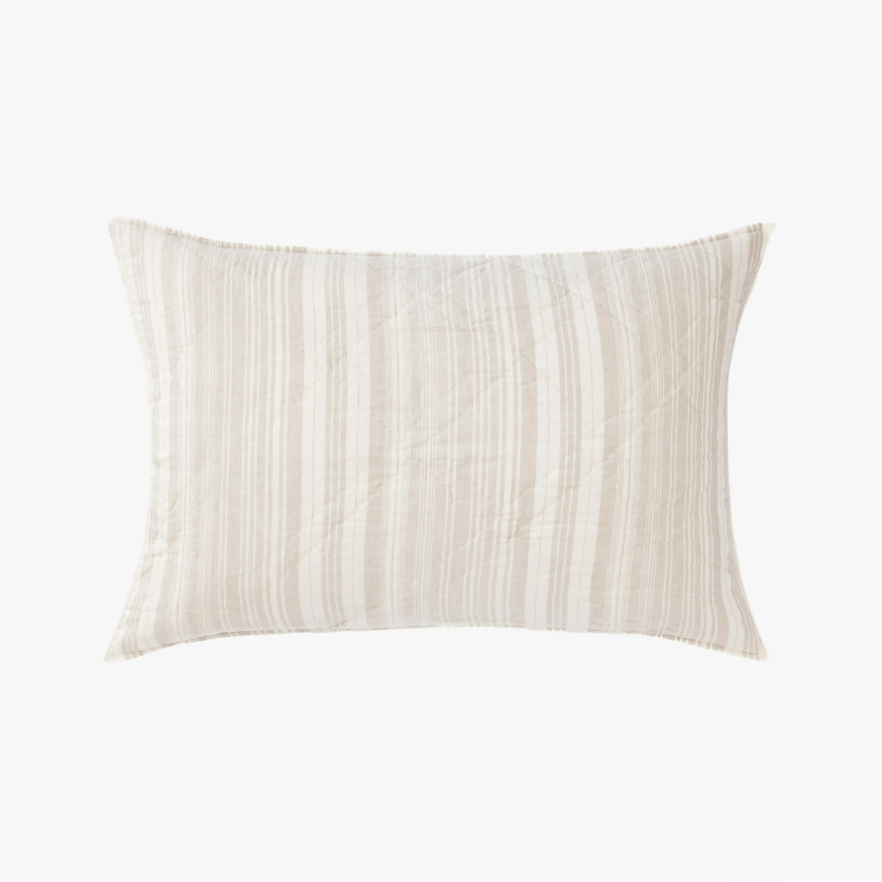 Fine linen and cotton are yarn dyed and woven together to create this complex unbalanced stripe. This versatile stripe can be used in settings from Coastal to Cottage and from Romantic to Masculine. Hand quilted for a soft finish._x000D_