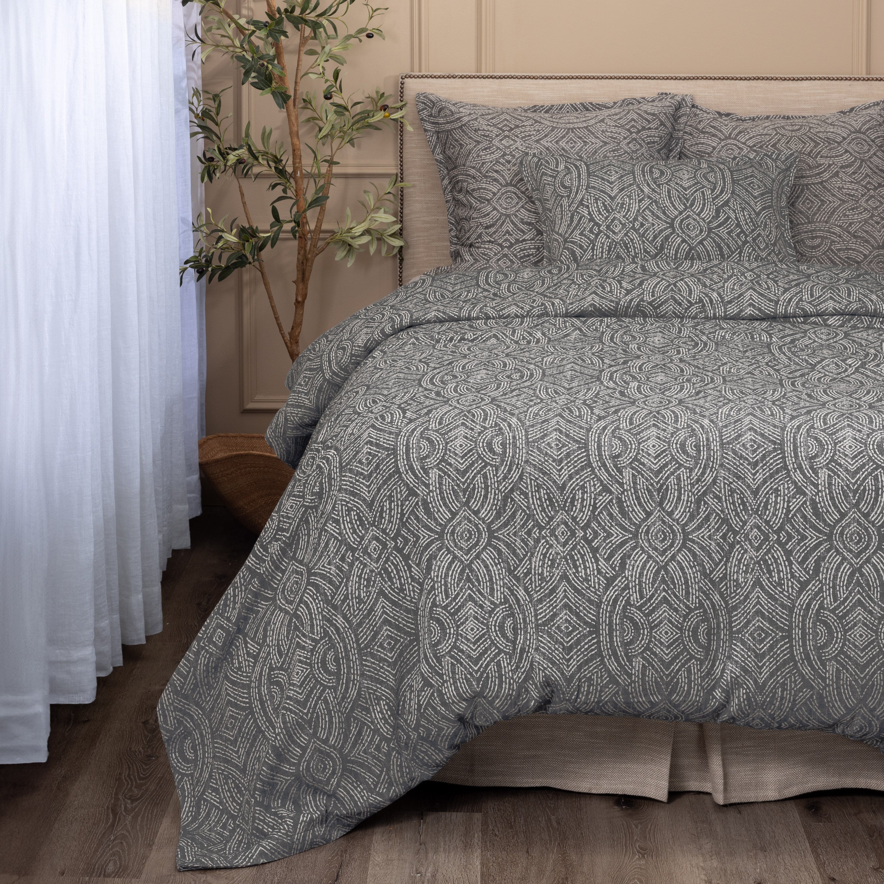 Inspired by tribal motifs, the Andre duvet cover combines plain and sateen weave styles to add visual interest and texture in this all over pattern. This collection is easily adaptable from a look that leans eclectic to one much more formal, simply by selecting alternative companion pieces.