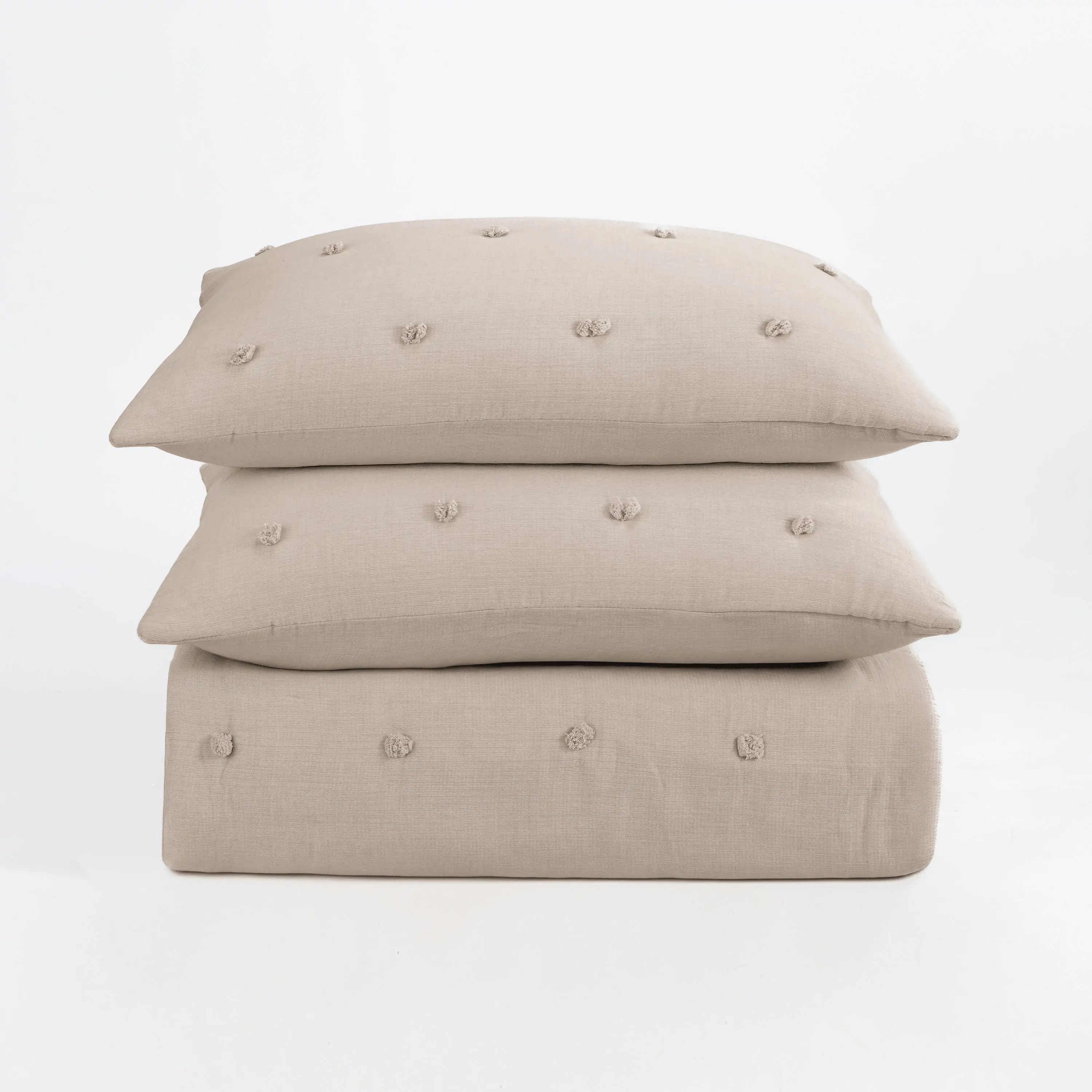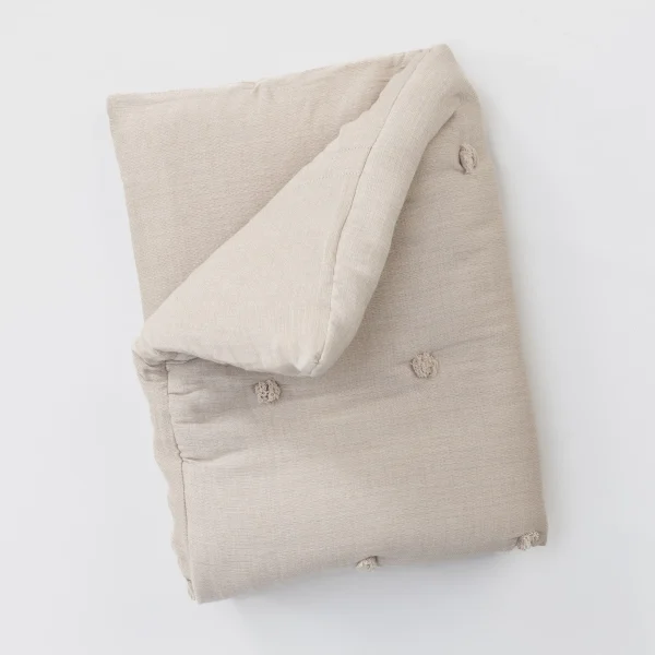 The Astrid Quilt is an ultra soft Cotton, with Linen texturing and decorative pom poms for a playful look. Available in Natural, Grey, and Asphalt. Pair it with our farmhouse inspired Ethan Velvet Quilt for a unique look that is unbelievably cozy._x000D_