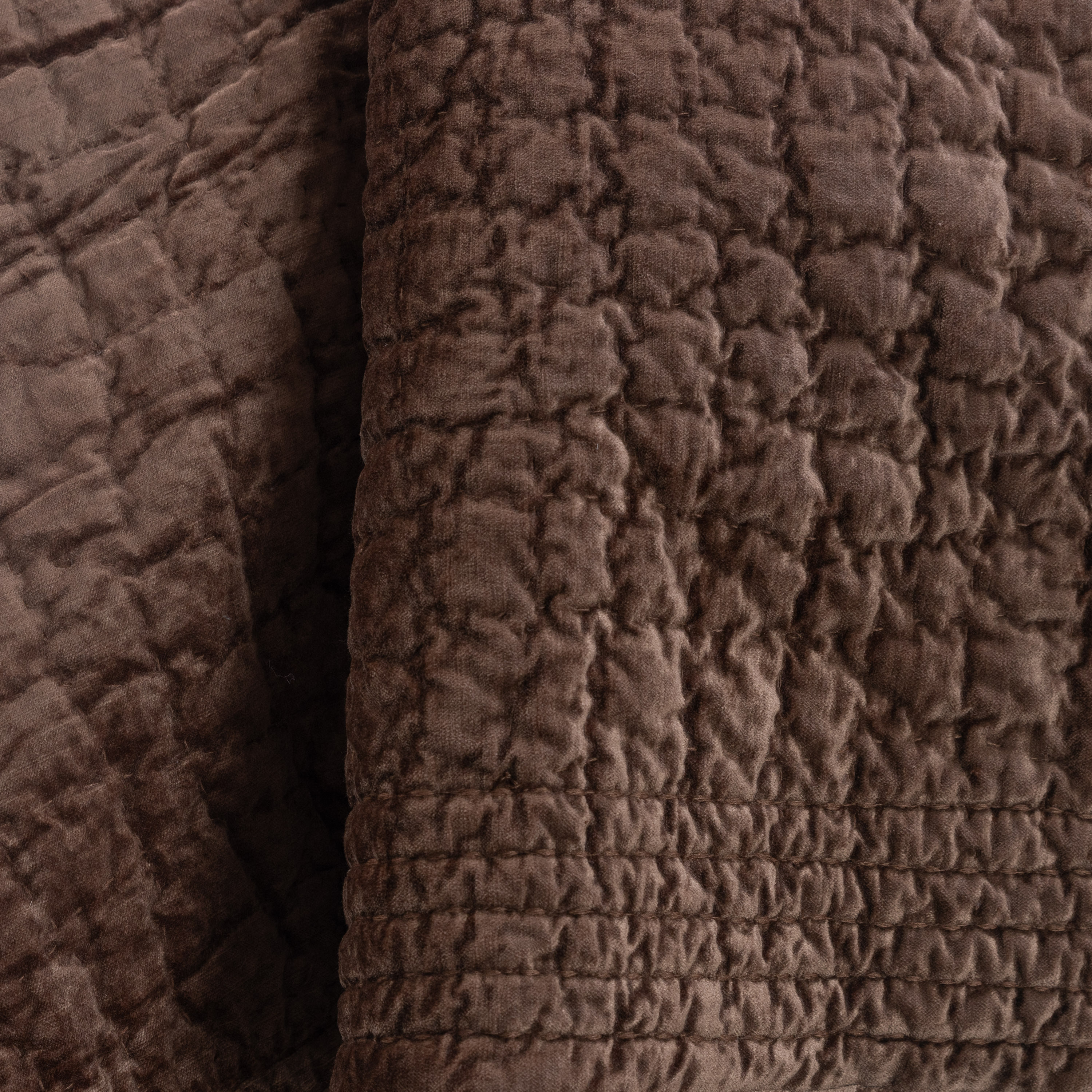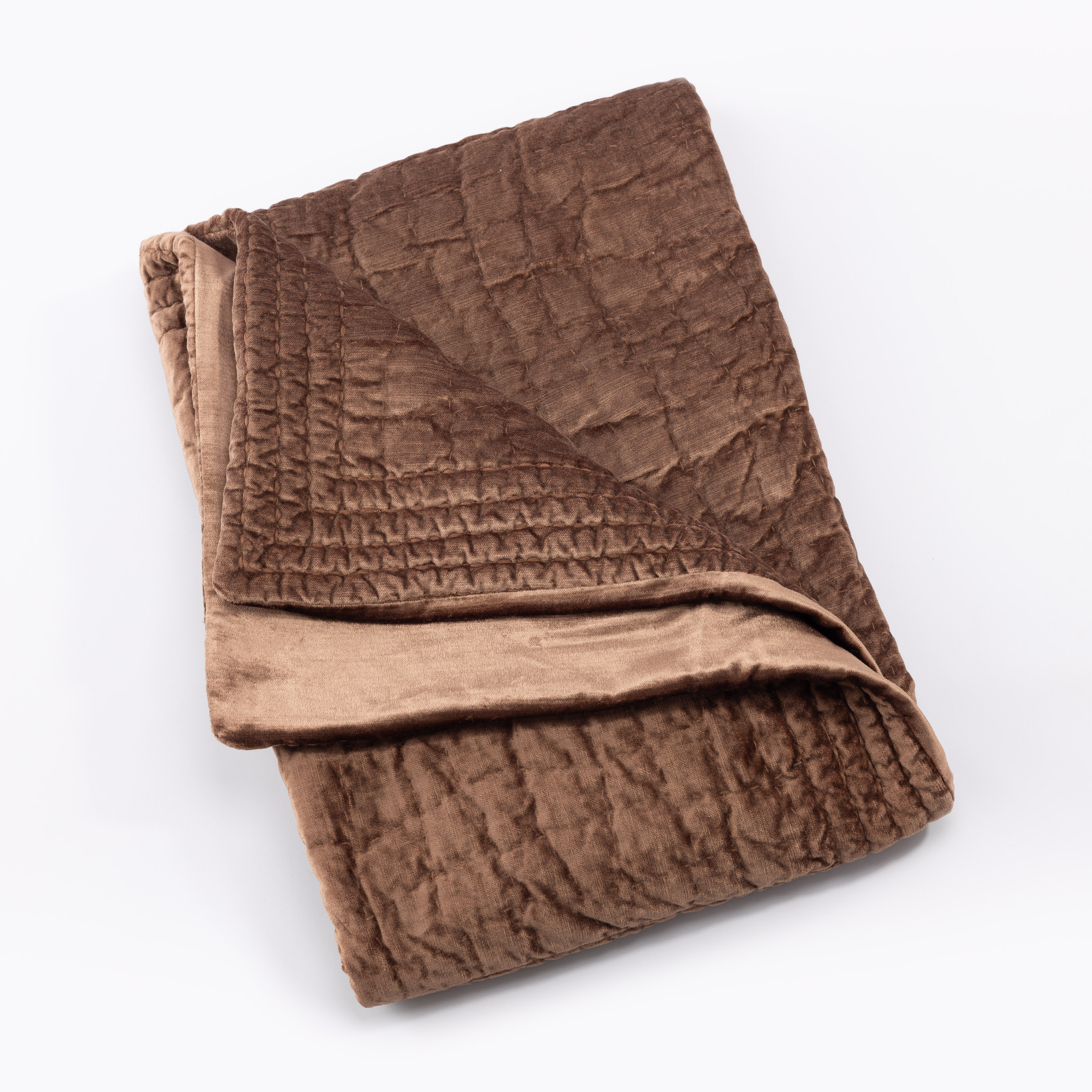 The Aurora quilt is a stunning piece crafted from lustrous viscous velvet, blending hand quilting with a machine-quilted border. Inspired by the mesmerizing Aurora Borealis, the quilt exhibits dynamic movement and depth, revealing varying tones and colors as you shift your perspective. The viscous fiber mimics the luxurious feel of silk velvet, enhancing its visual appeal. The elegant machine-quilted border beautifully complements the intricate hand stitching, making this quilt not just a functional piece, but a work of art that adds a unique touch to any space. Perfect for layering in your decor, it offers versatility and sophistication in every glance.
