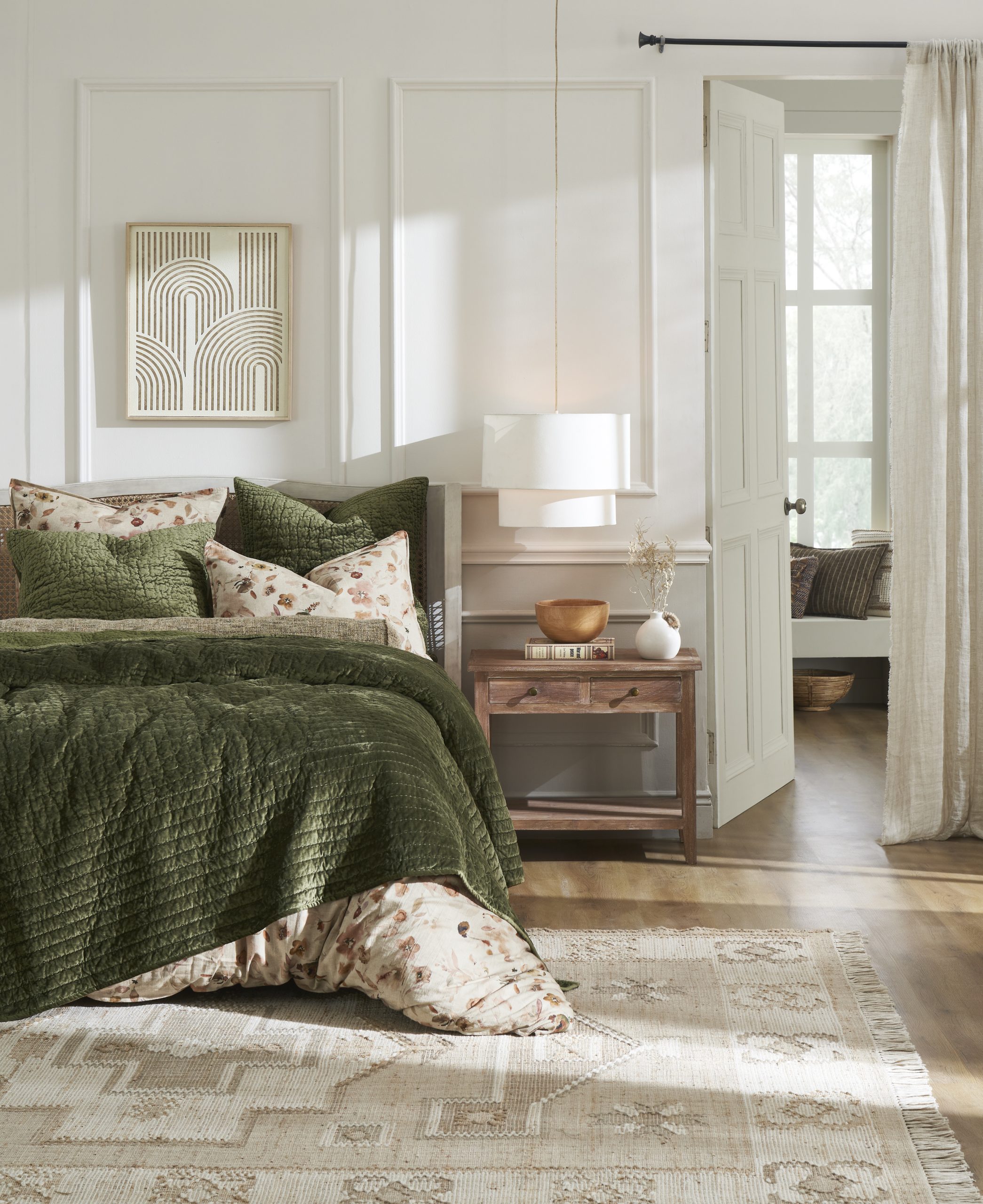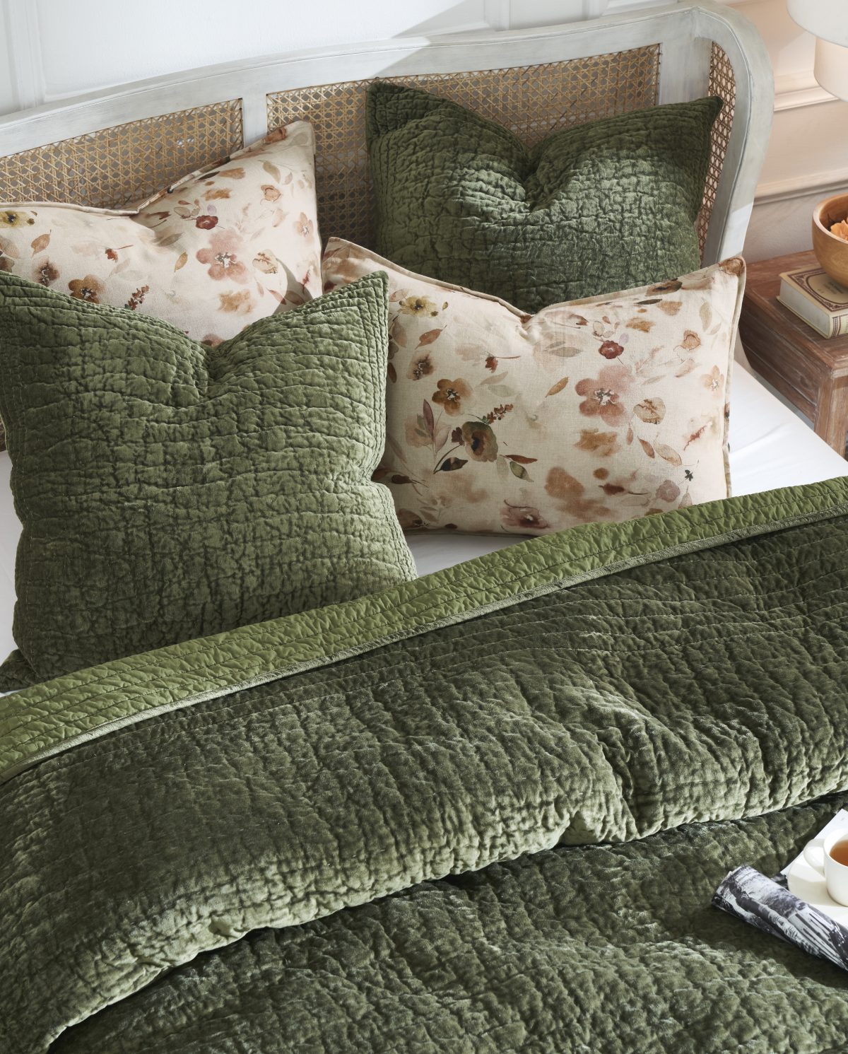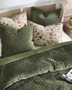 The Aurora quilt is a stunning piece crafted from lustrous viscous velvet, blending hand quilting with a machine-quilted border. Inspired by the mesmerizing Aurora Borealis, the quilt exhibits dynamic movement and depth, revealing varying tones and colors as you shift your perspective. The viscous fiber mimics the luxurious feel of silk velvet, enhancing its visual appeal. The elegant machine-quilted border beautifully complements the intricate hand stitching, making this quilt not just a functional piece, but a work of art that adds a unique touch to any space. Perfect for layering in your decor, it offers versatility and sophistication in every glance.