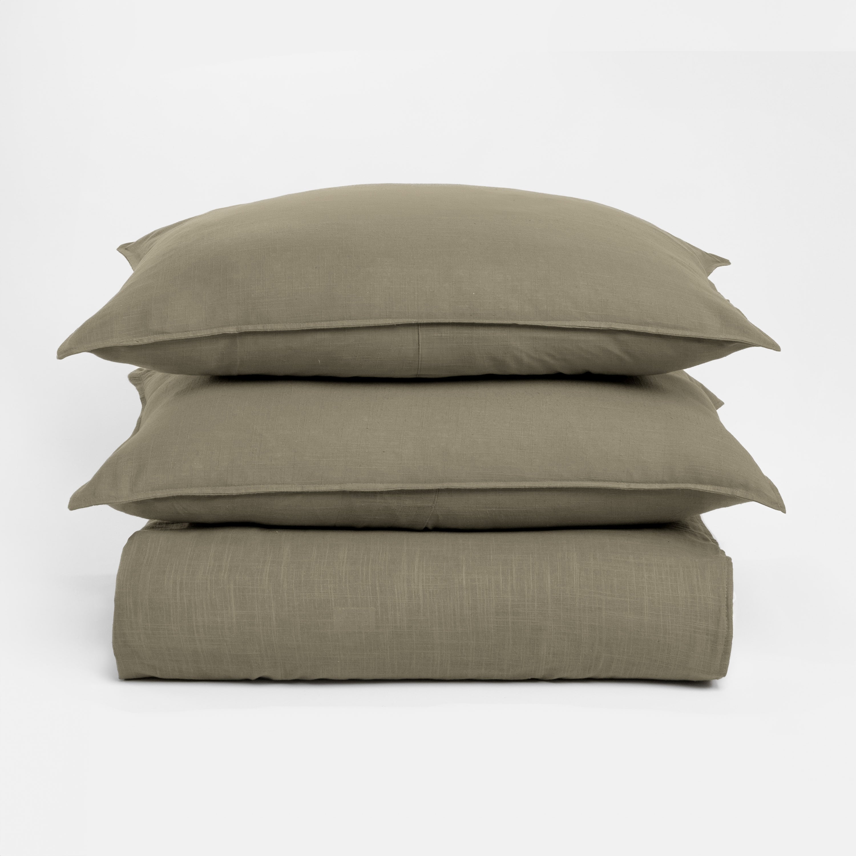 The Baker duvet cover offers a refined simplicity, finished with a trim ½” straight inset flange. Constructed of 100% cotton, with a delicate slub this collection presents the look of luxurious linen with a moderate price tag. The duvet cover and shams are finished with an inset flange. The duvet has a button enclosure, 4″ flap inside the opening to hide the filler and ties on all 4 sides to keep the comforter from moving. Shams have a button closure centered on the back.
