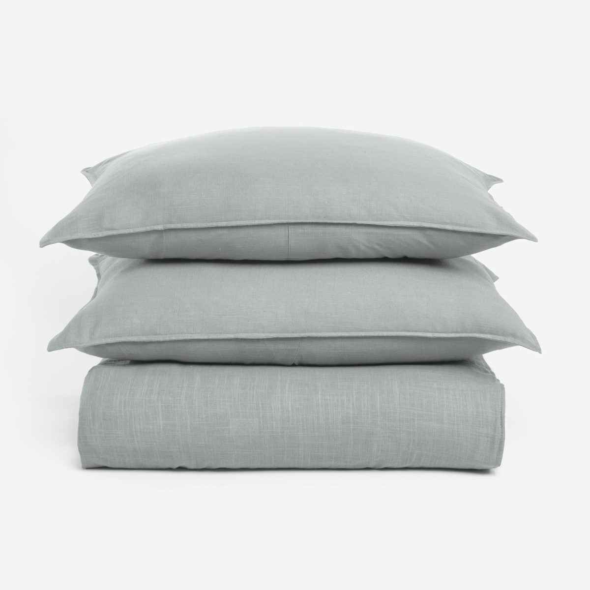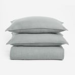 The Baker duvet cover offers a refined simplicity, finished with a trim ½” straight inset flange. Constructed of 100% cotton, with a delicate slub this collection presents the look of luxurious linen with a moderate price tag. The duvet cover and shams are finished with an inset flange. The duvet has a button enclosure, 4″ flap inside the opening to hide the filler and ties on all 4 sides to keep the comforter from moving. Shams have a button closure centered on the back.