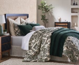 This color scheme is perfect for a masculine aesthetic, with rich earthy tones of Laurel and Granite in bold contrast to crisp Ivory. The geometric pattern of the Mateo coverlet is designed with clean, sharp lines and angles, giving the bedding a contemporary edge. Juxtaposing, the angular details, the Baker duvet cover and Fletcher coverlet are constructed of soft cotton for comfort and easy care. Finish with a single textural accent pillow like Philips XL Bolster.