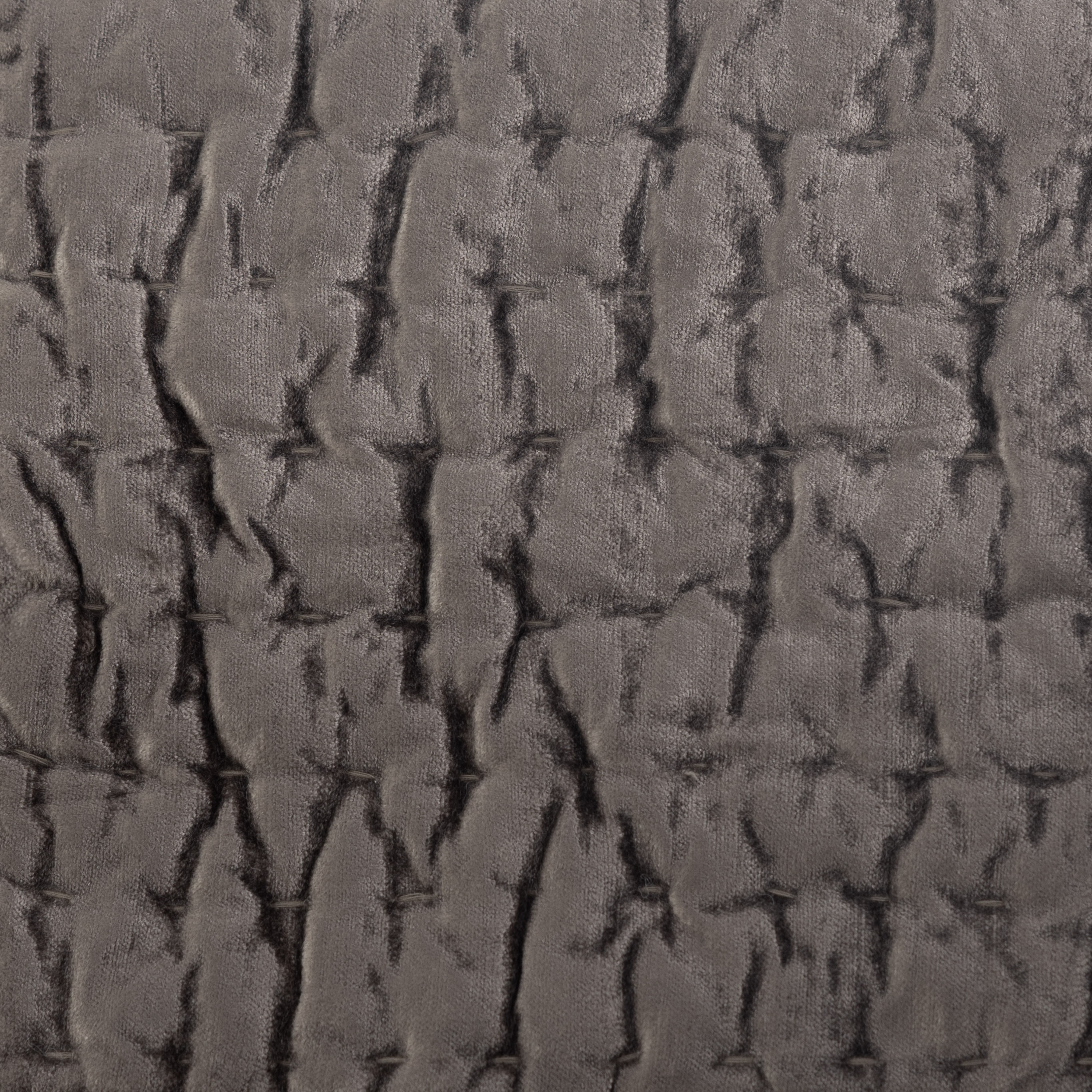 A perfect pairing of refinement and artisanal influence converge in the Baldwin quilt as lustrous rayon velvet is hand quilted with an exaggerated kantha style stitch. The result is a subtle rippling which allows the light to dance beautifully as the fabric naturally puckers with each stitch. The Baldwin quilt is available in: