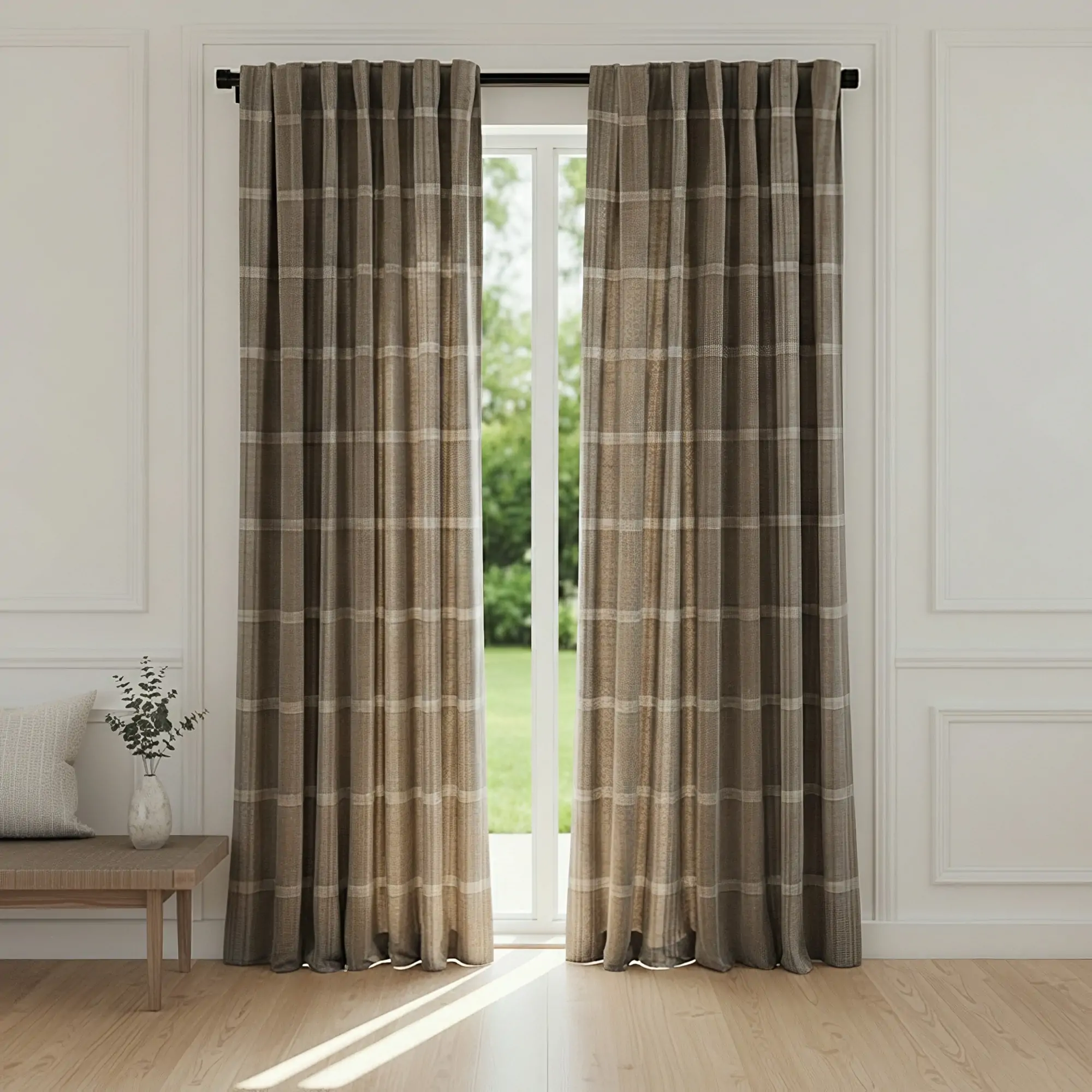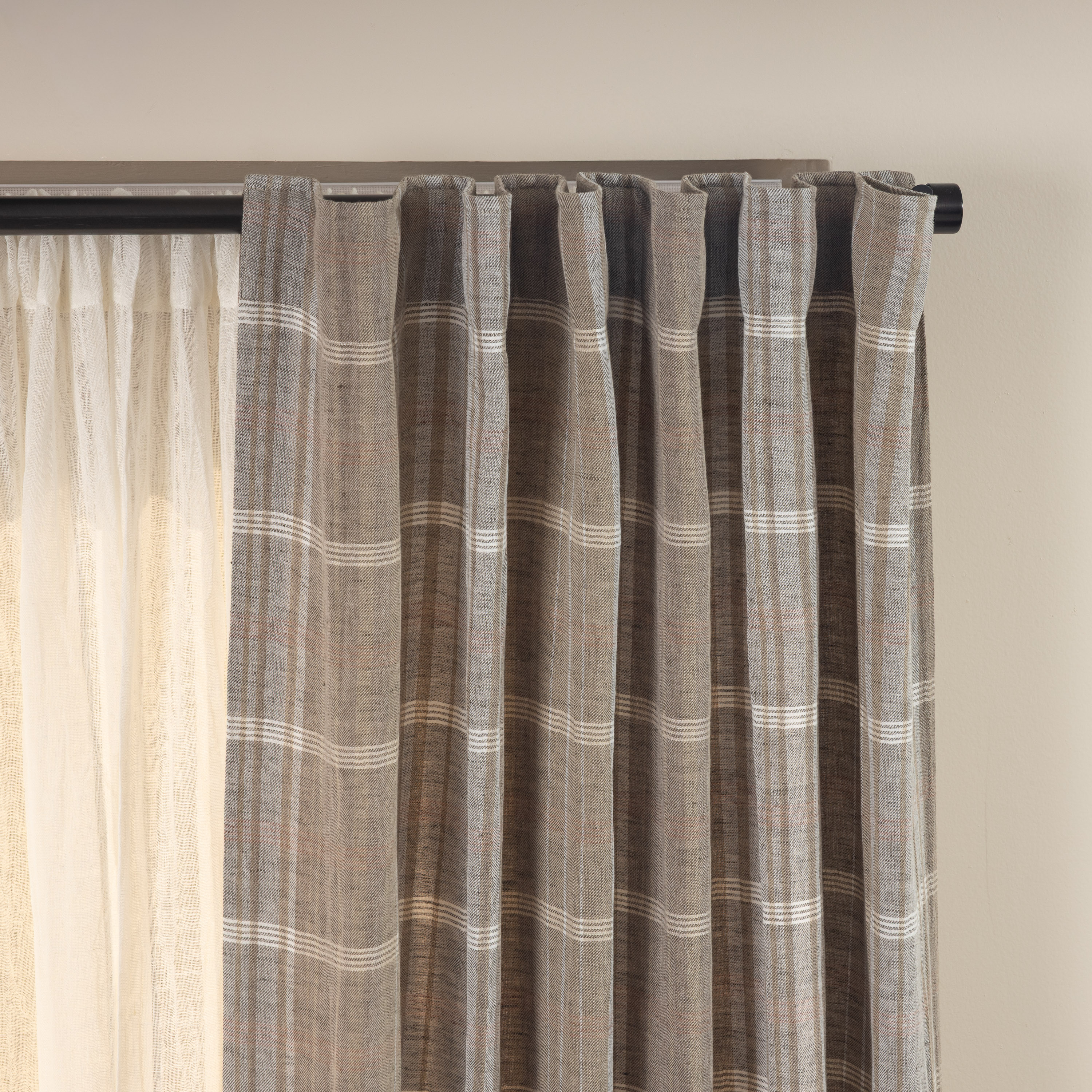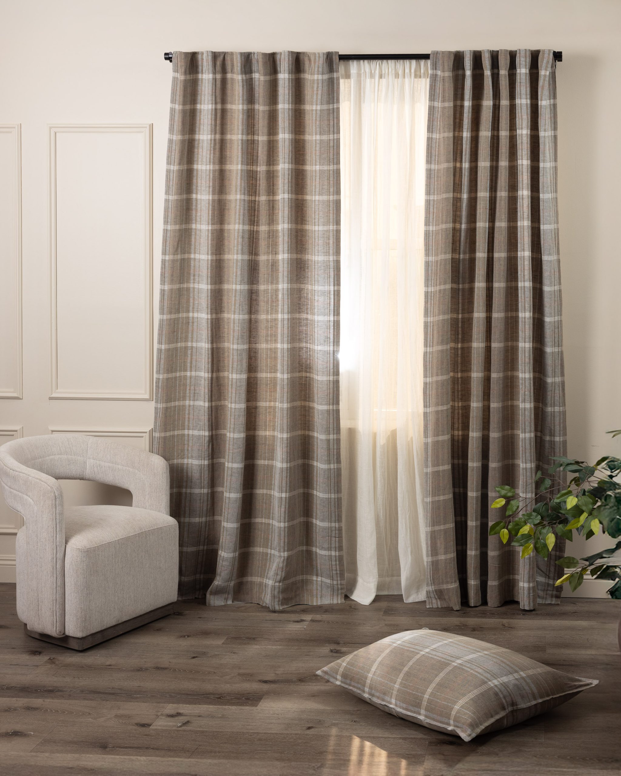 A modern interpretation of a classic, this large-scale multi-color plaid curtain panel brings refined warmth and relaxed structure to any space. Woven from fine cotton with an exceptionally soft hand, it hangs with an easy, graceful drape that highlights the bold pattern and curated blend of warm and cool tones. The oversized plaid offers subtle contrast and visual interest without overwhelming the room, striking the perfect balance between statement and softness. Versatile and timeless, this panel complements both traditional and contemporary interiors with understated sophistication.