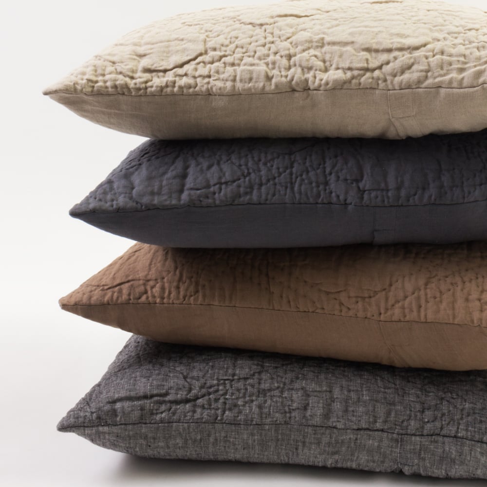 Barcelona is constructed of 100% fine linen front and back, and hand quilted in an elongated double diamond pattern. The scale of the pattern provides for a soft drape and feel to this quilt as well as giving a classic motif a fresh update.