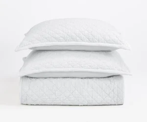Barcelona is constructed of 100% fine linen front and back, and hand quilted in an elongated double diamond pattern. The scale of the pattern provides for a soft drape and feel to this quilt as well as giving a classic motif a fresh update.