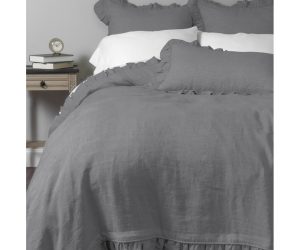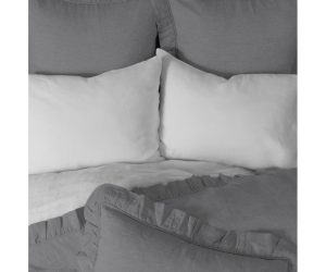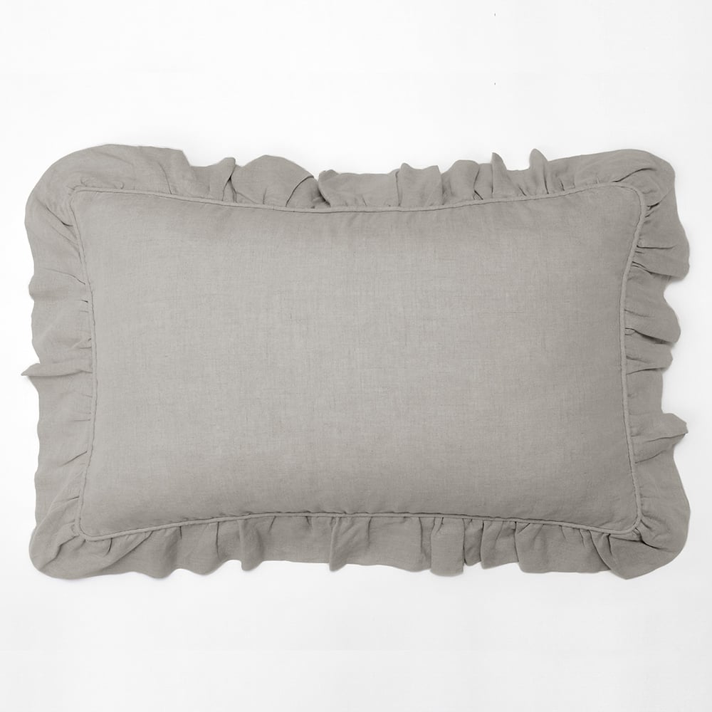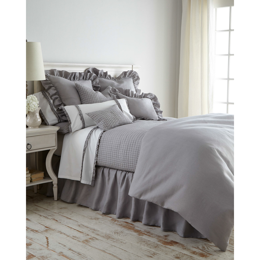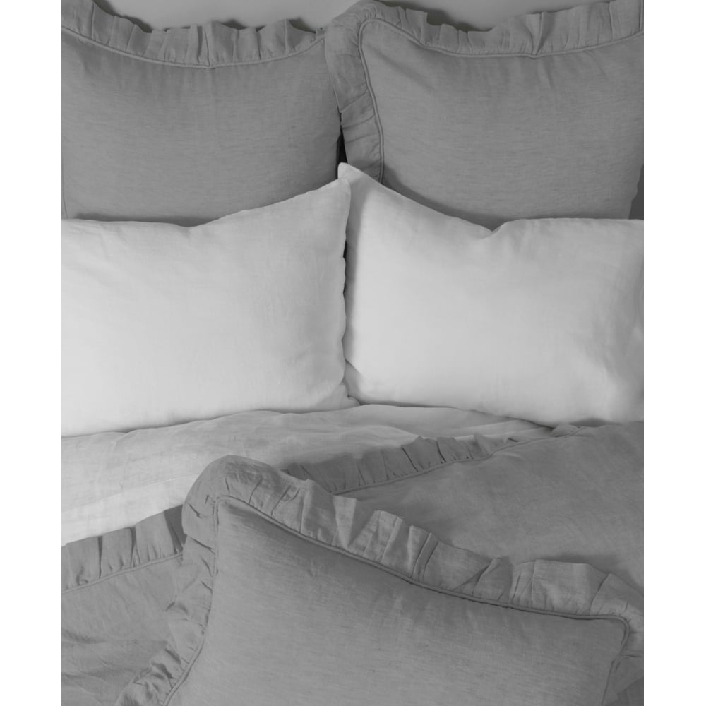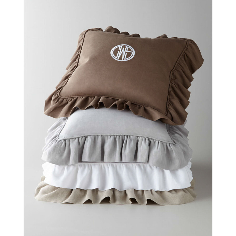 Add a touch of femininity with this lovely collection. Constructed of fine linen and finished neatly with piping and a delicate ruffle.