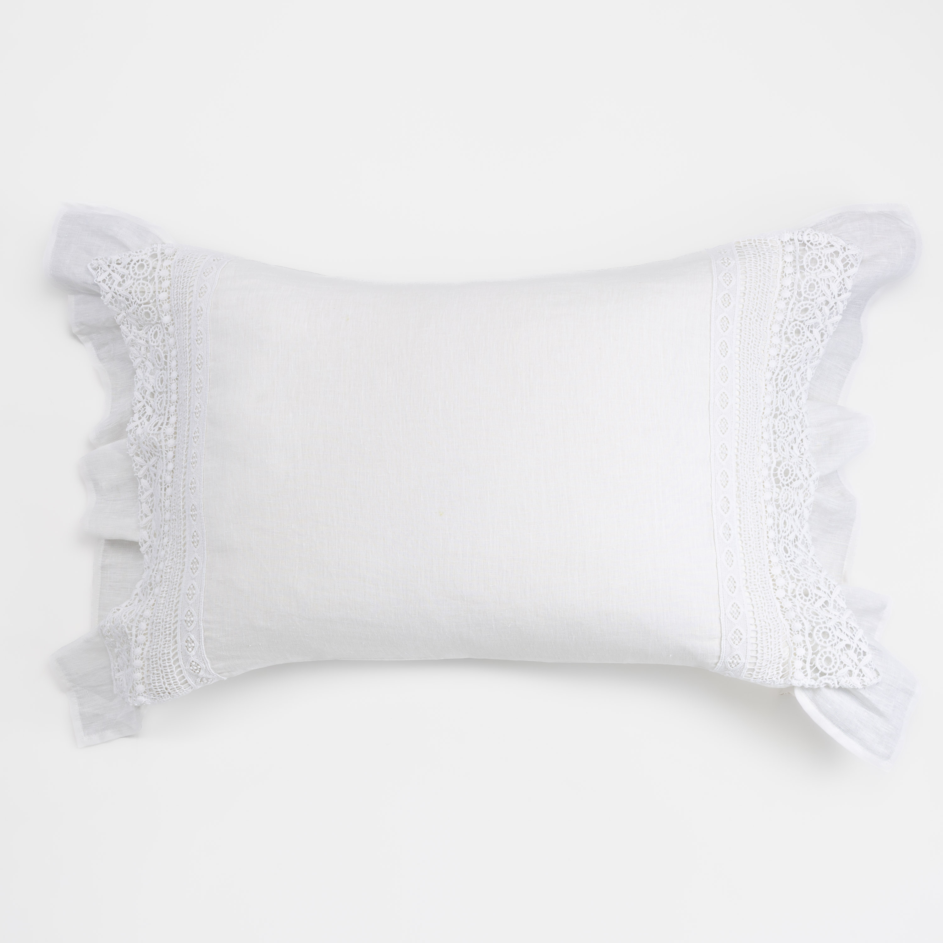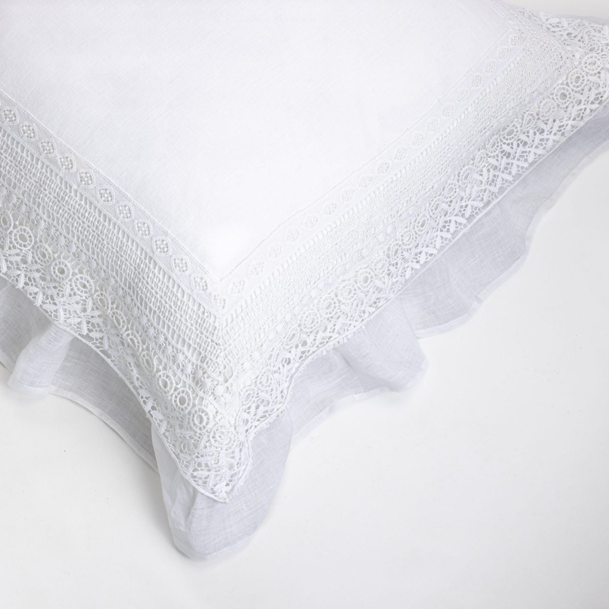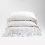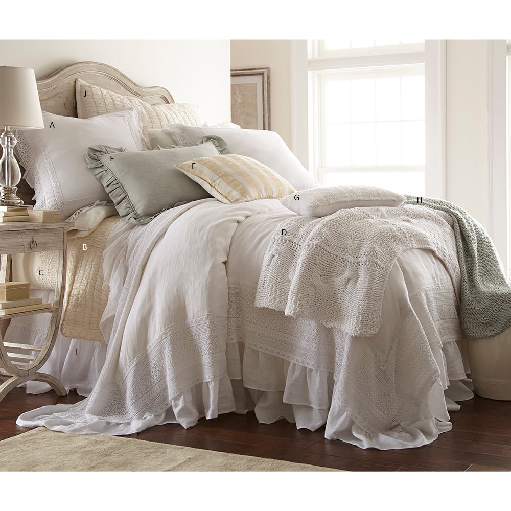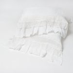 Luxurious in linen, the Bellamy duvet cover is adorned with 16 inches of exquisite lace and ruffle on all sides, providing a nod to feminine elegance..