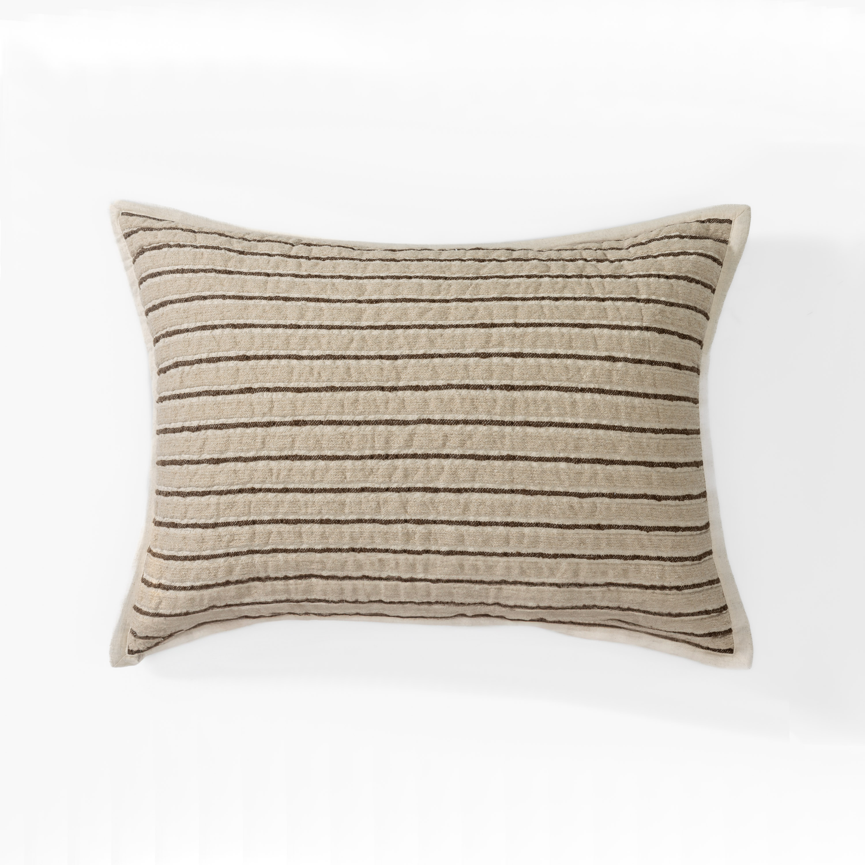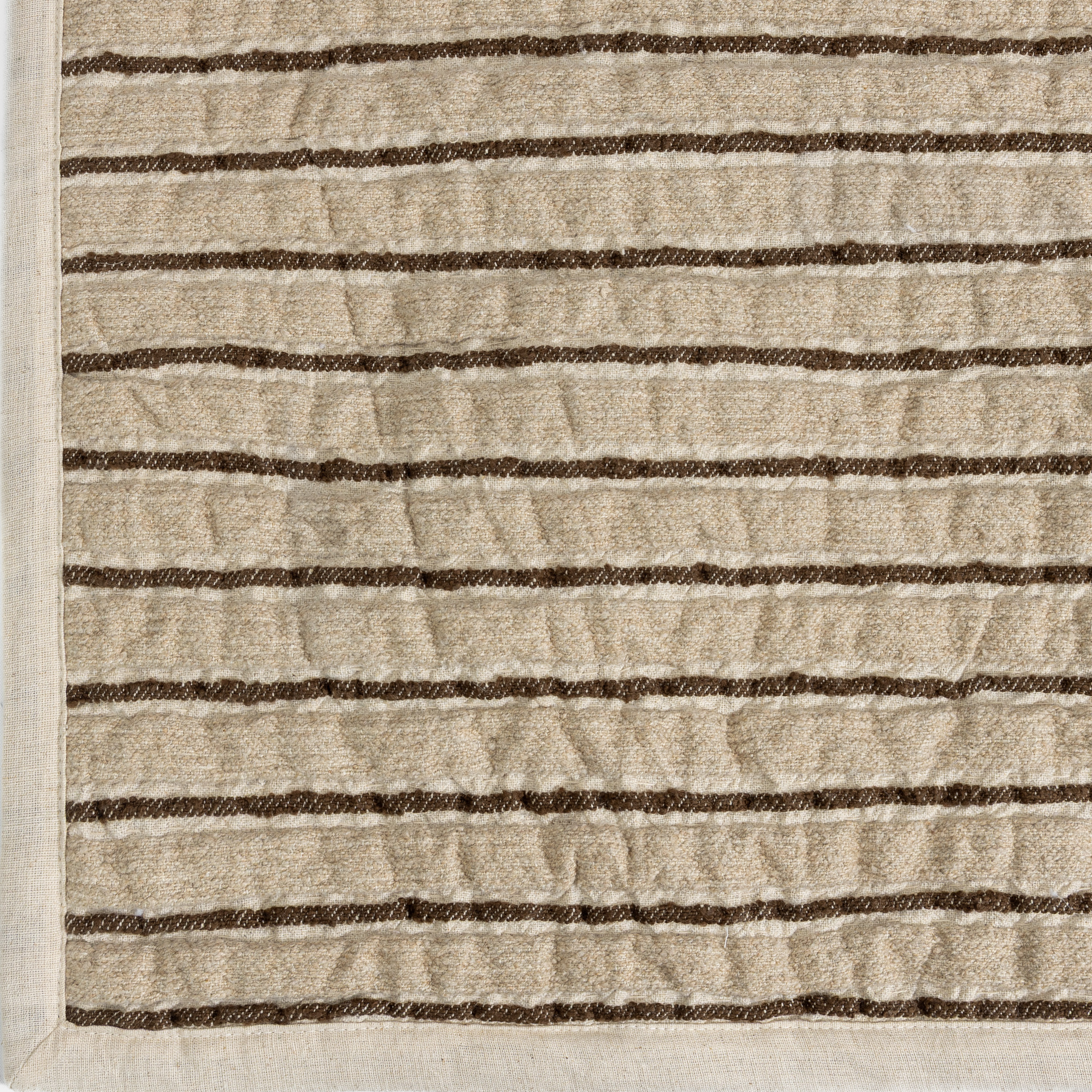 The Bonita quilt beautifully combines linen and cotton boucle, creating a textured yet sophisticated look. Woven with various weave styles to create a high-low effect, that is accentuated with subtle hand quilting. The quilt and shams are backed and finished with an unbleached & undyed cotton linen blend that adds it’s own natural fleck. This truly collection offers an engaging visual and tactile experience.
