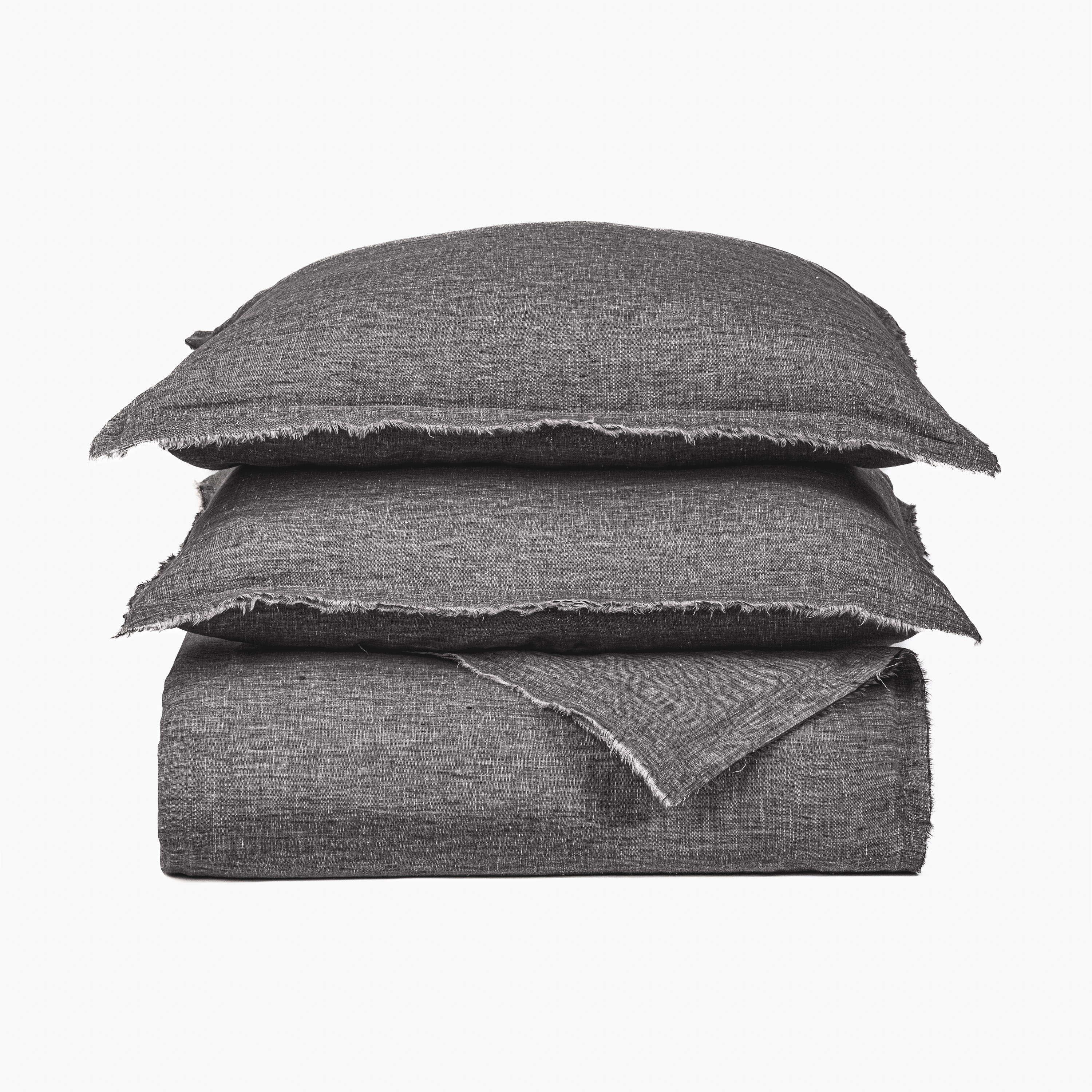 Brisbane is constructed of washed linen with a double needle stitched, raw torn edge flange for a touch of deconstructed sophistication.