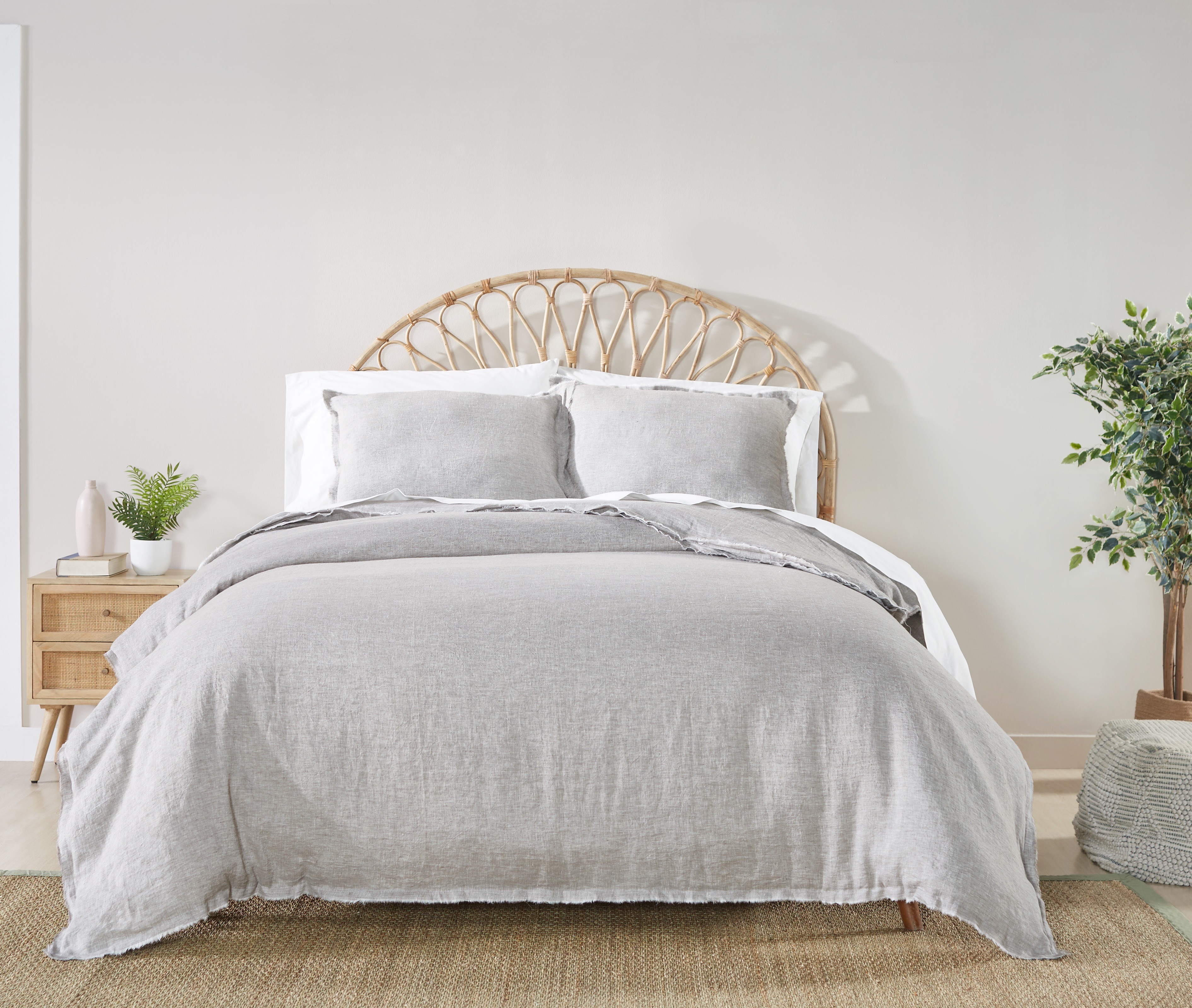 Brisbane is constructed of washed linen with a double needle stitched, raw torn edge flange for a touch of deconstructed sophistication.