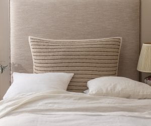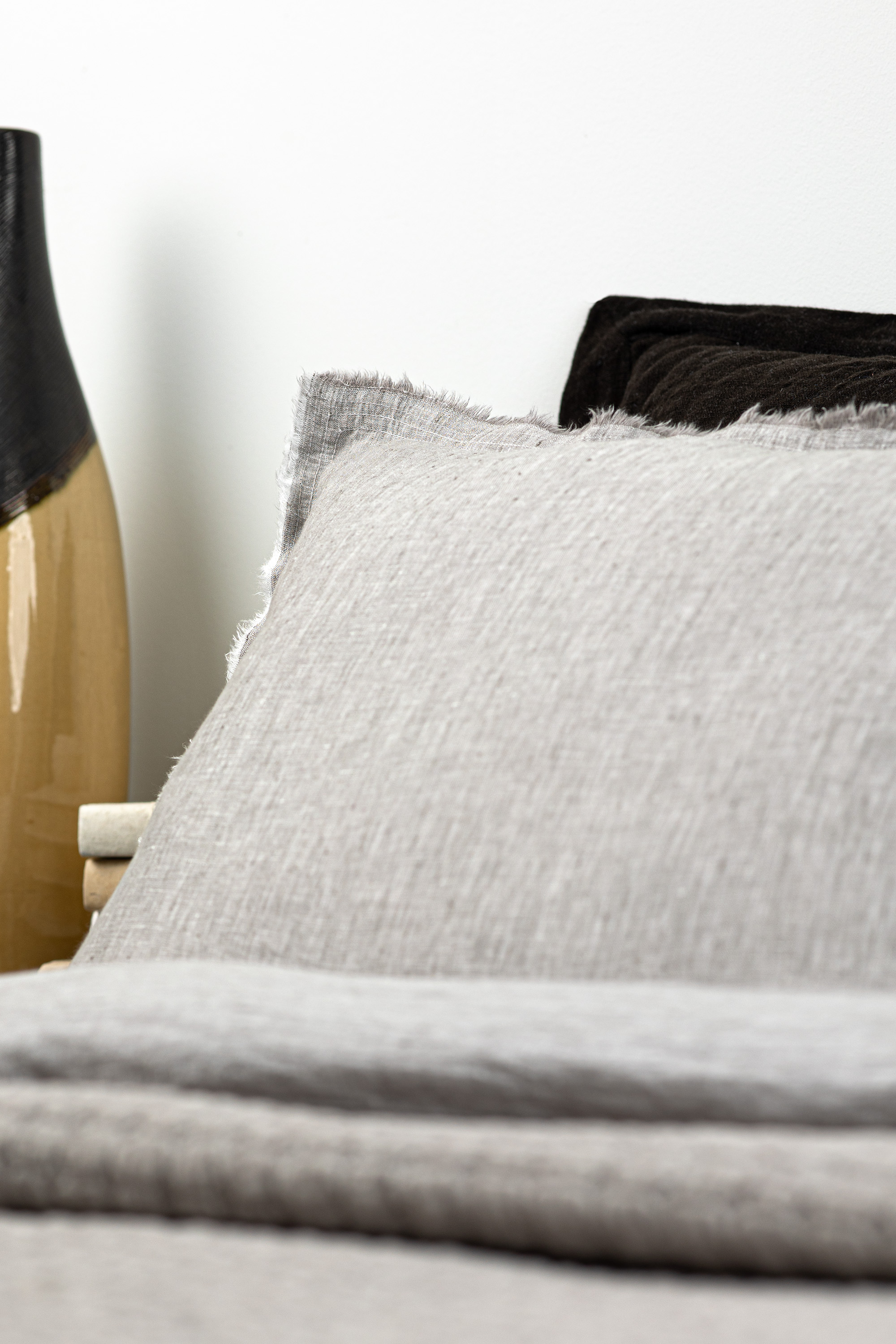 Brisbane is constructed of washed linen with a double needle stitched, raw torn edge flange for a touch of deconstructed sophistication.