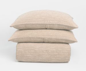 Brisbane is constructed of washed linen with a double needle stitched, raw torn edge flange for a touch of deconstructed sophistication.