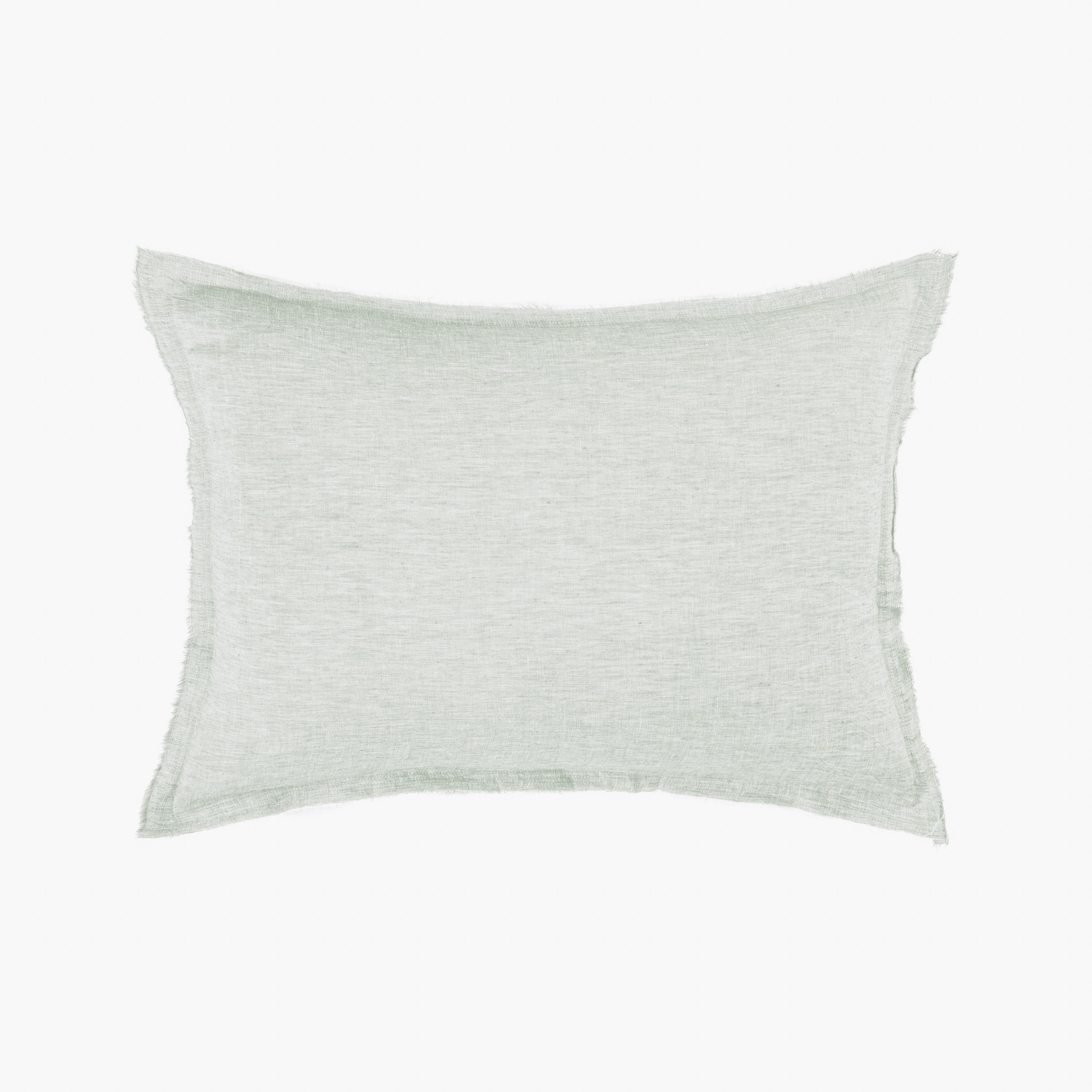 Brisbane is constructed of washed linen with a double needle stitched, raw torn edge flange for a touch of deconstructed sophistication.