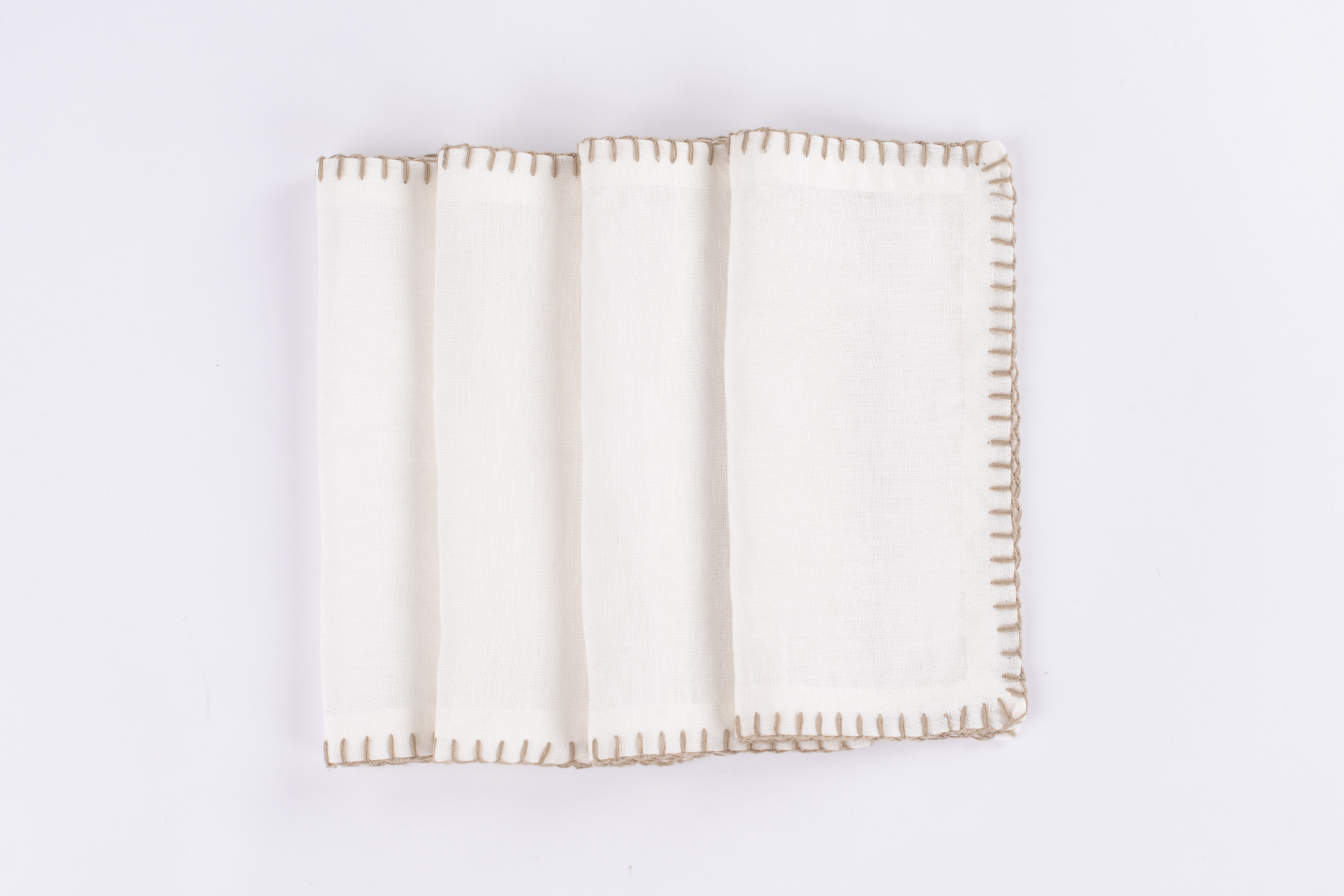 Bryce Linen Cocktail Napkin Set (Set Of 4), Ivory