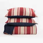 Camden Red reverses to a rich Indigo denim and is a perfect graphic complement to the classic Clayton quilt. The Leena accent pillow, an Indigo mud cloth inspired print, adds a fresh artisanal element to the setting.