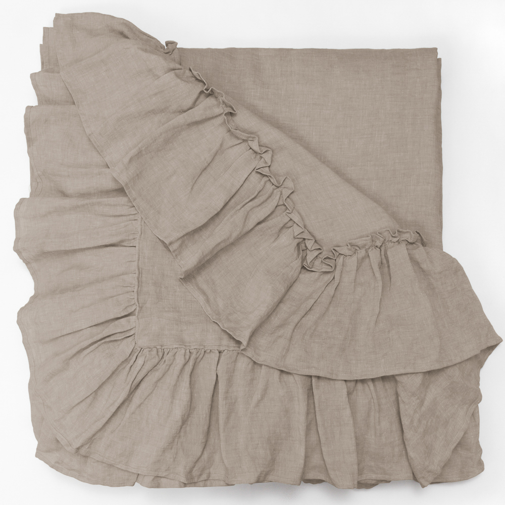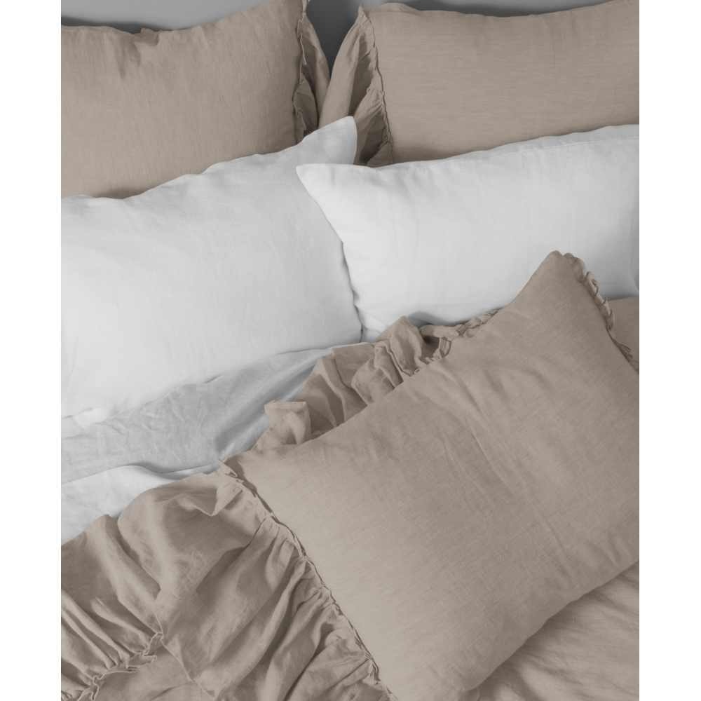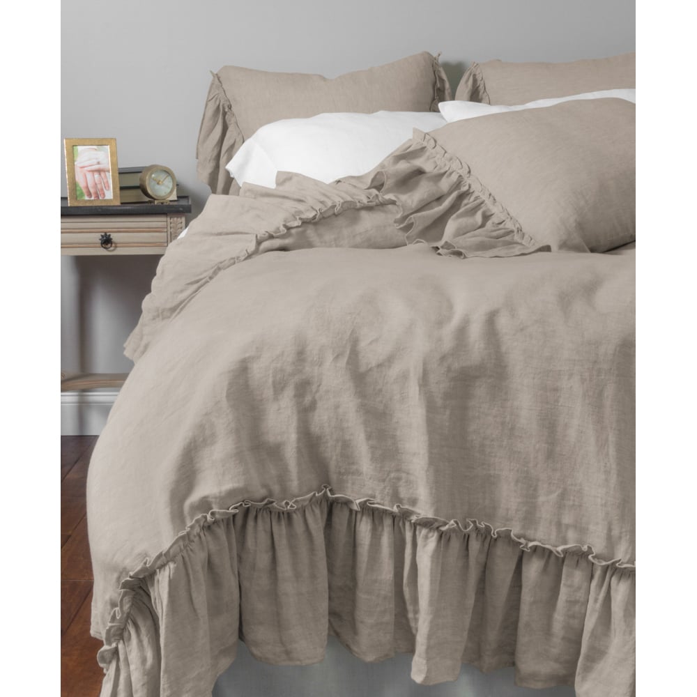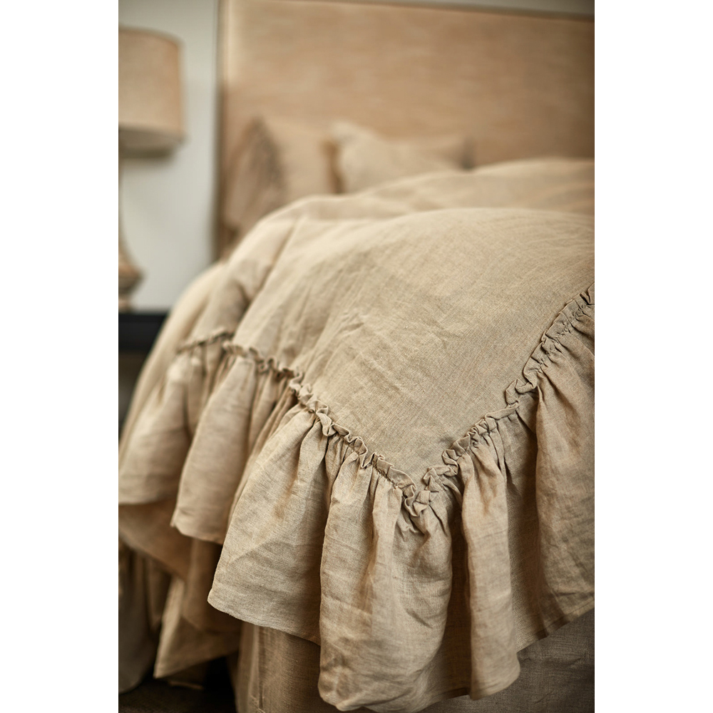 Surrounded by 10 additional inches of romantic ruffles and available in 10 colors of washed linen, the Caprice Duvet cover is the perfect selection to achieve an idyllic ambience.