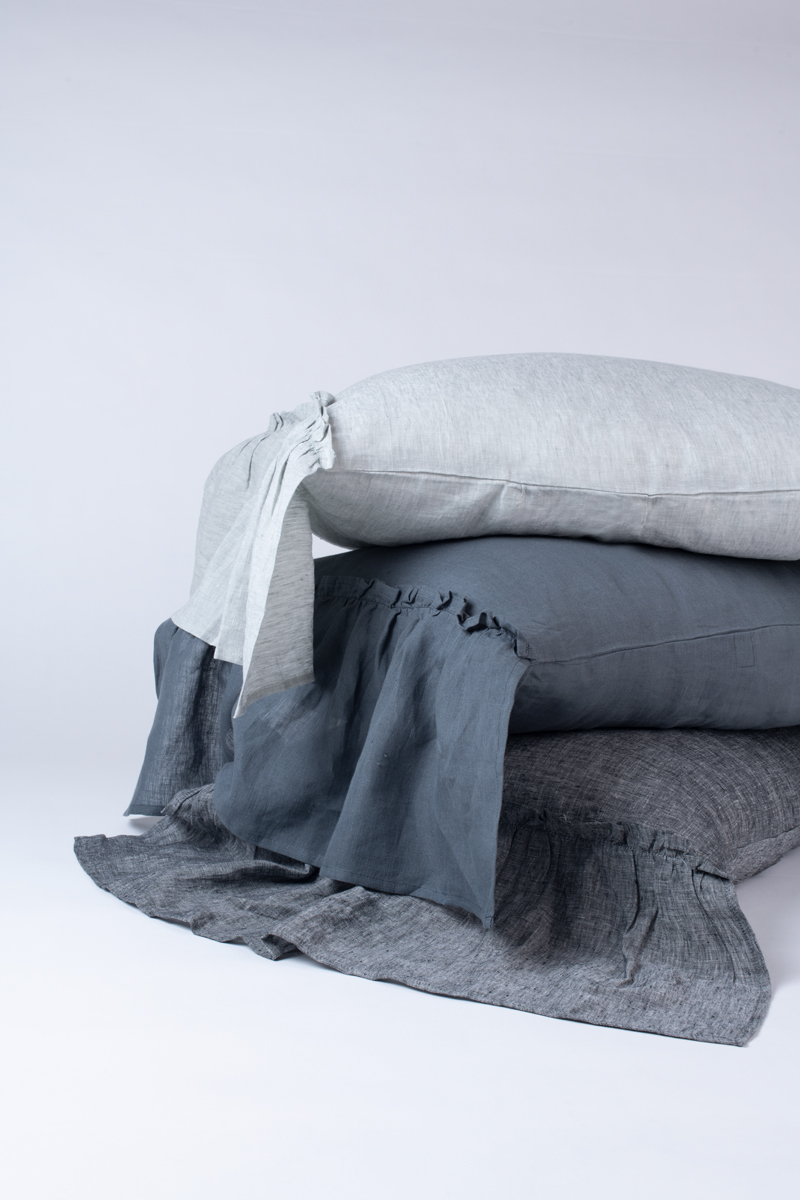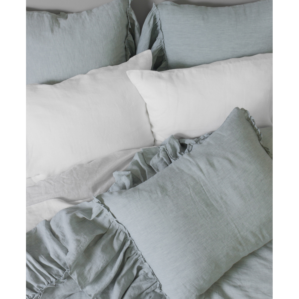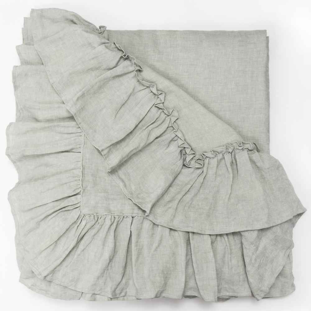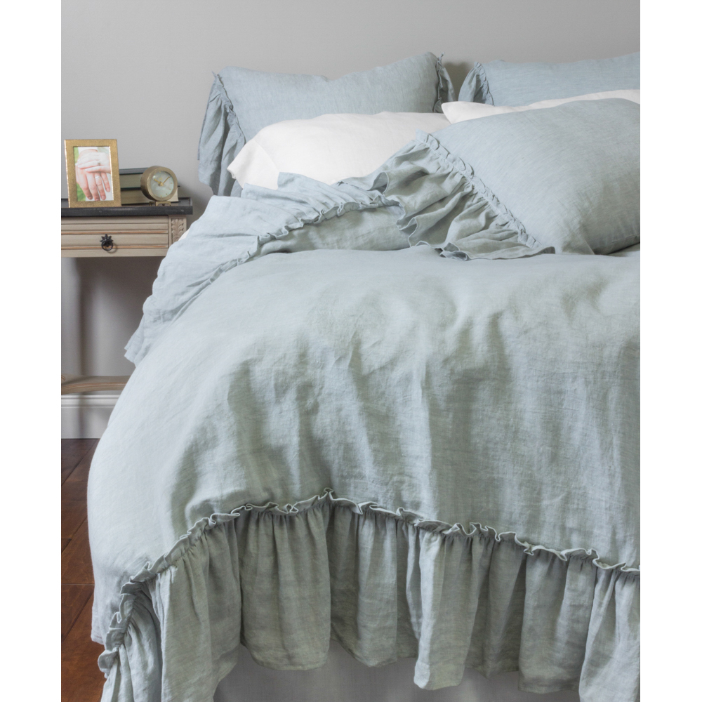 Surrounded by 10 additional inches of romantic ruffles and available in 10 colors of washed linen, the Caprice Duvet cover is the perfect selection to achieve an idyllic ambience.