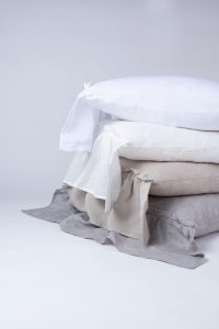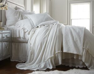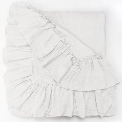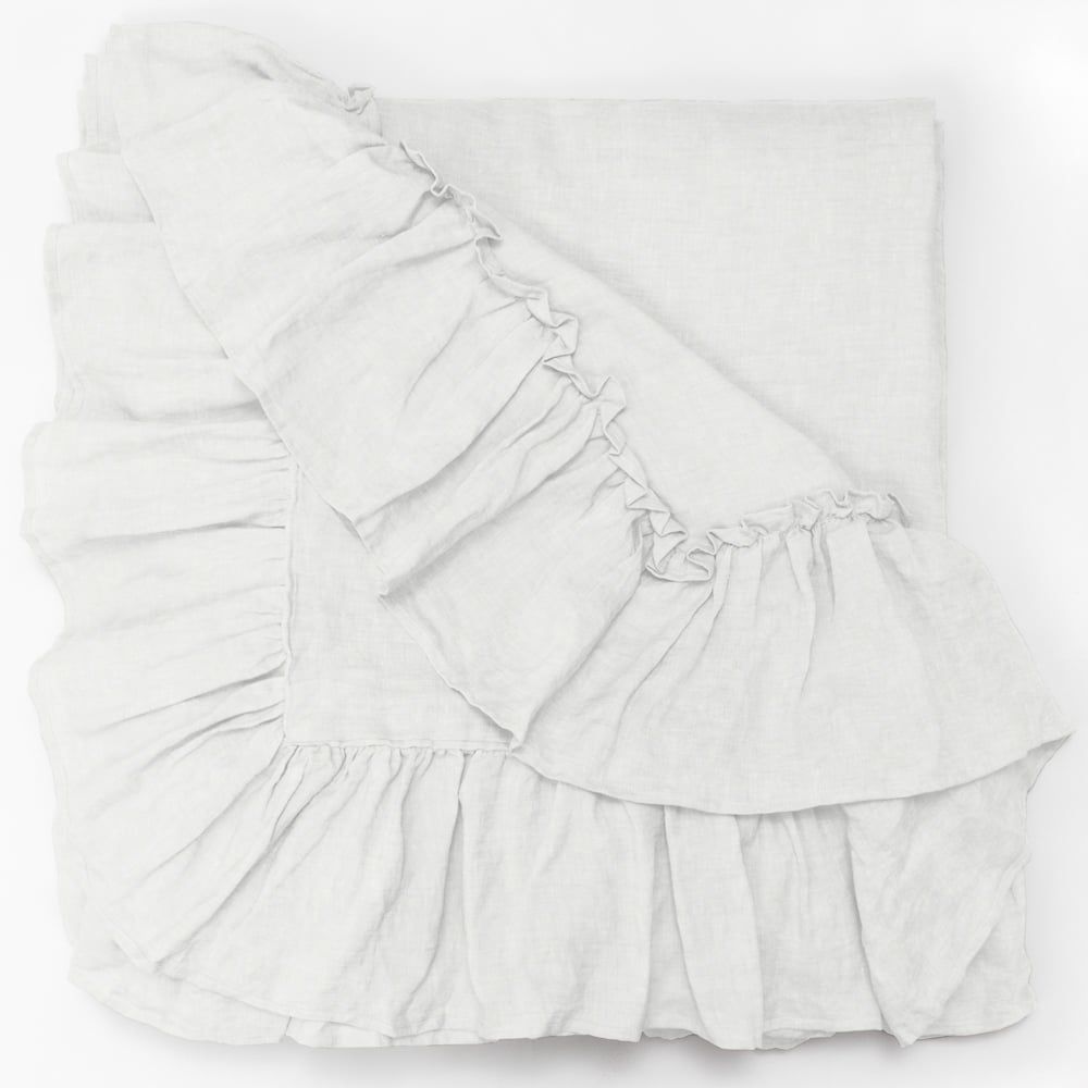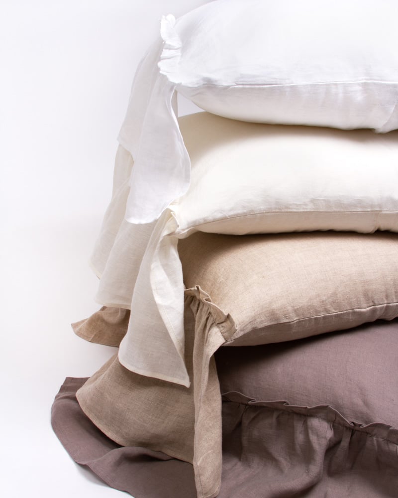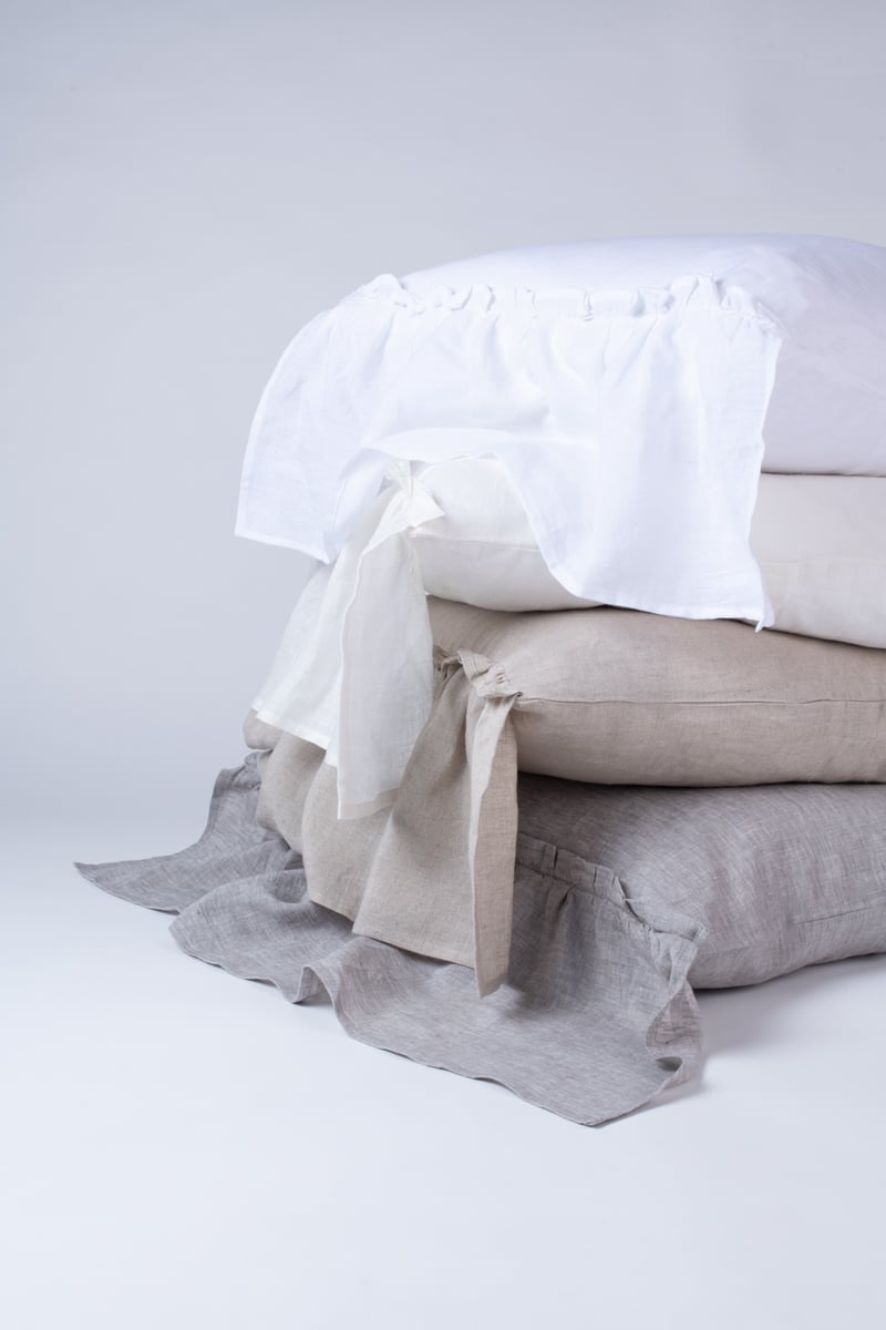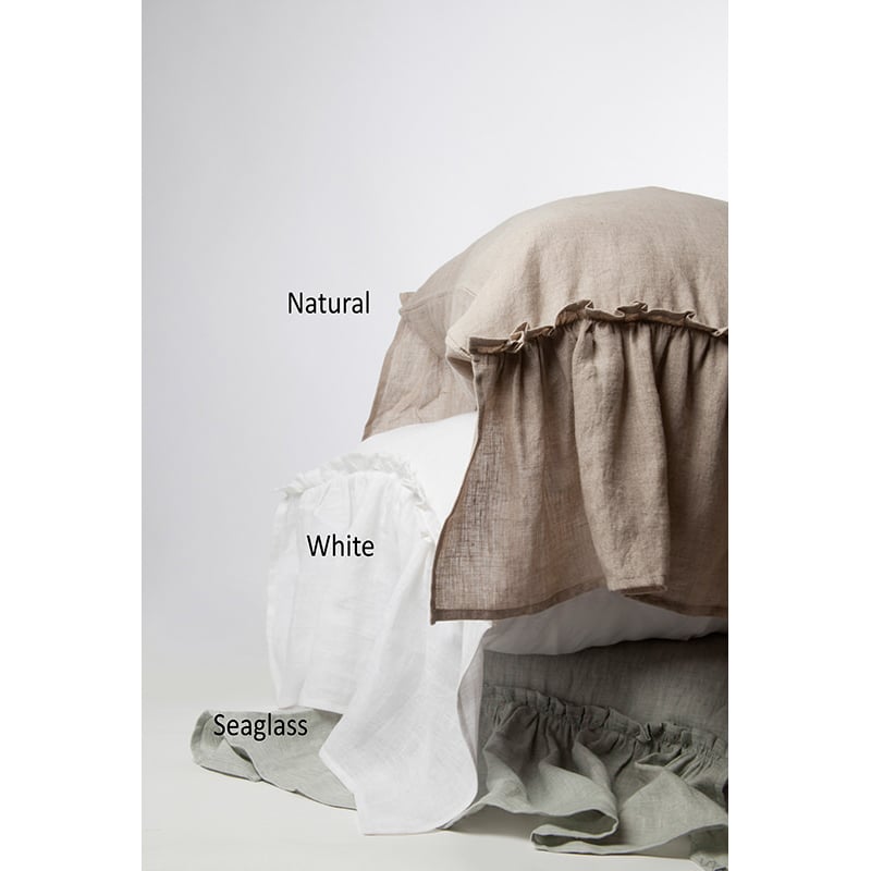 Surrounded by 10 additional inches of romantic ruffles and available in 10 colors of washed linen, the Caprice Duvet cover is the perfect selection to achieve an idyllic ambience.