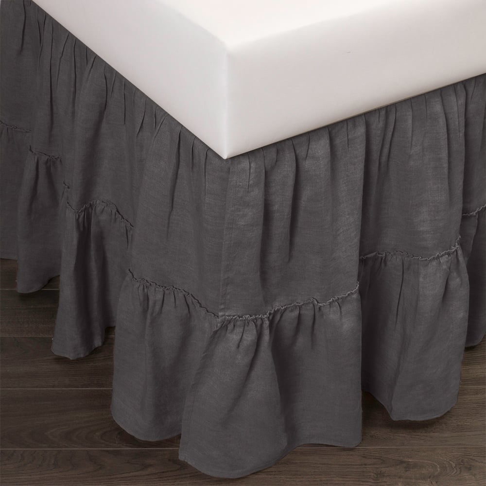 Caprice Linen Bed Skirt, Steel Blue