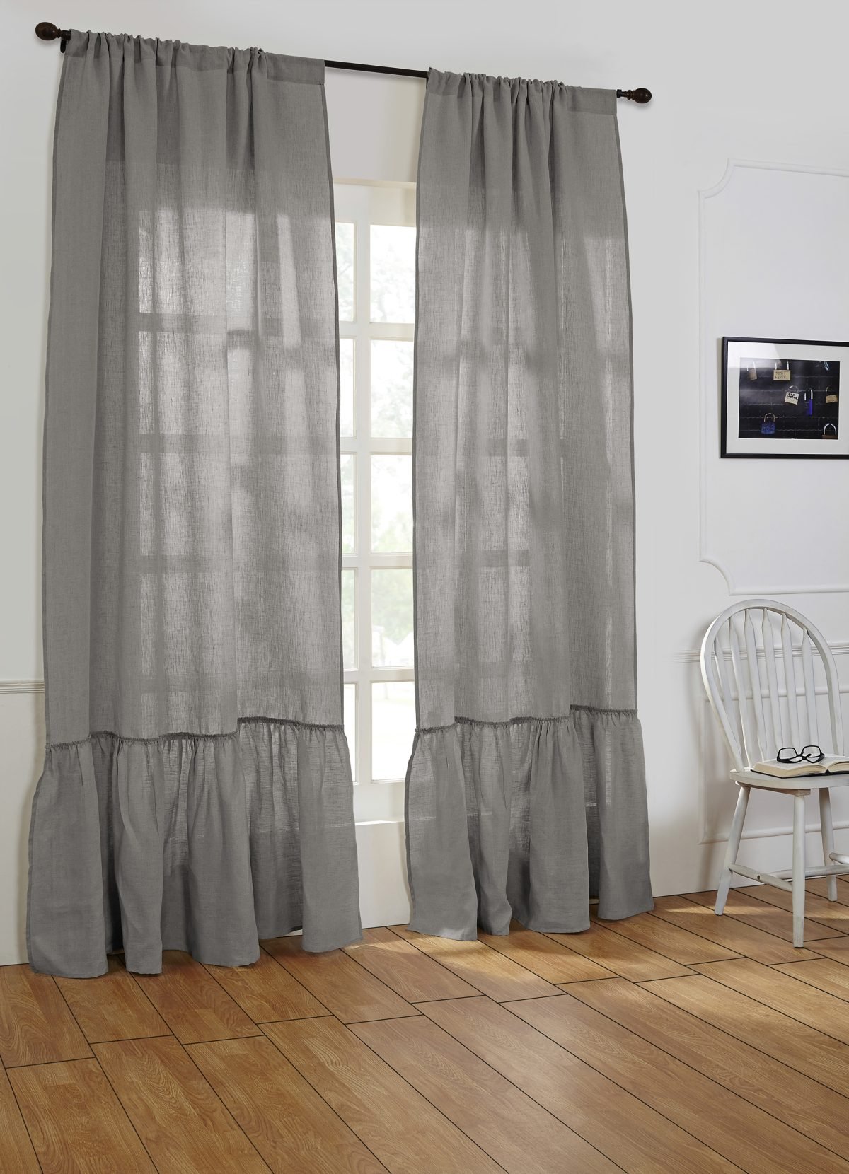 Our Amity “Assential” Caprice Linen window panel adds a touch of romance to any room with a long ruffle along the bottom edge.