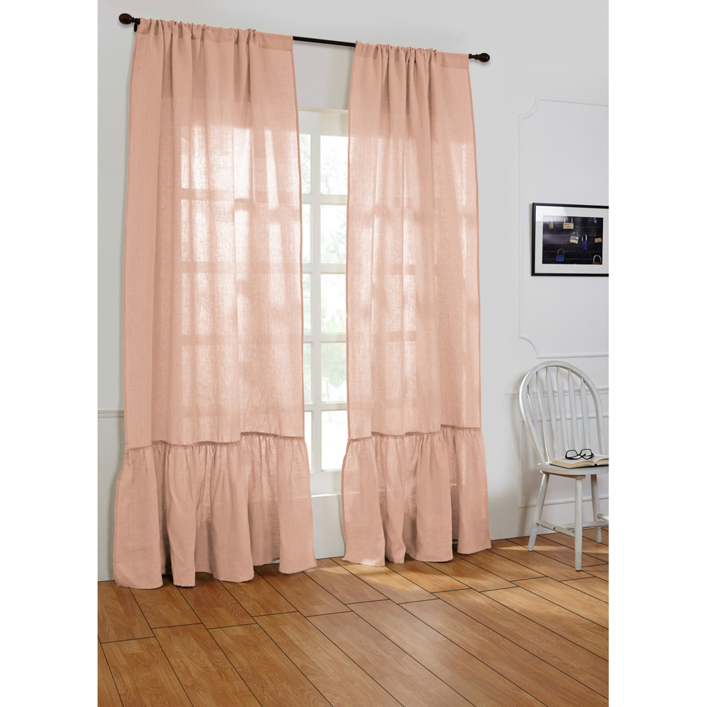 Our Amity “Assential” Caprice Linen window panel adds a touch of romance to any room with a long ruffle along the bottom edge.