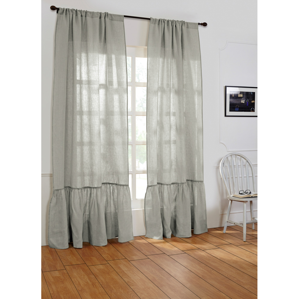 Our Amity “Assential” Caprice Linen window panel adds a touch of romance to any room with a long ruffle along the bottom edge.
