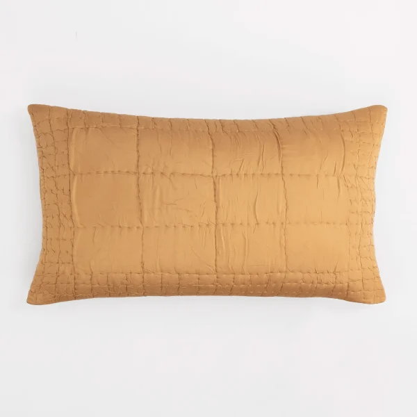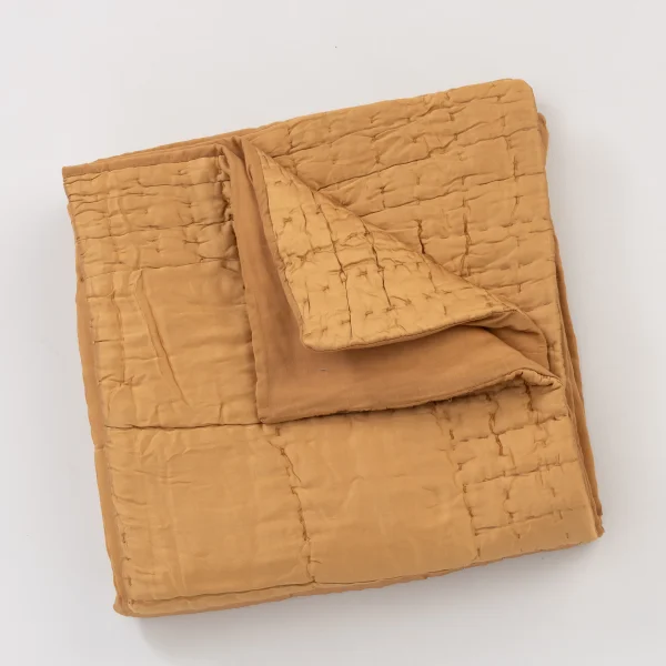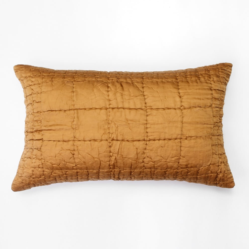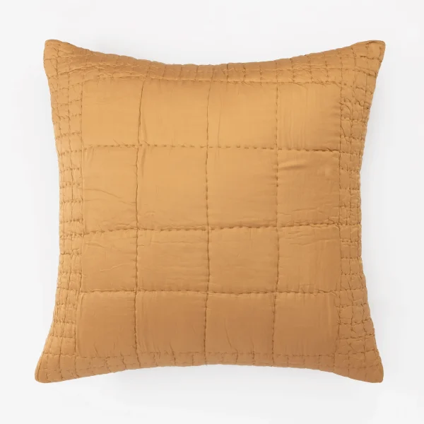 The Cash quilt is constructed of silky viscose backed with soft cotton voile and hand quilted in a gridded block pattern with a quarter scale border. This collection has an air of modern elegance when dressed up and can easily lend itself to a more bohemian flair depending on application. .