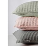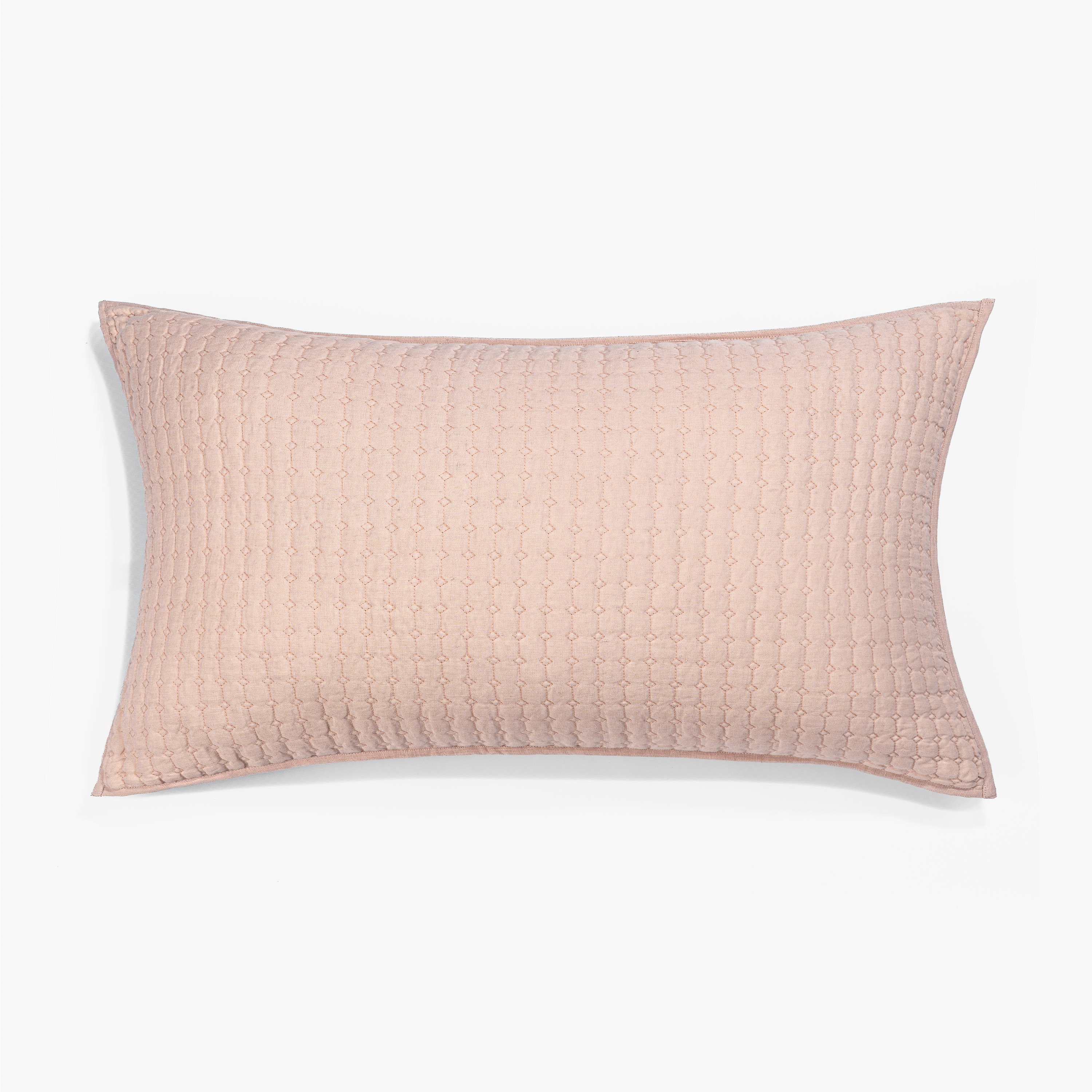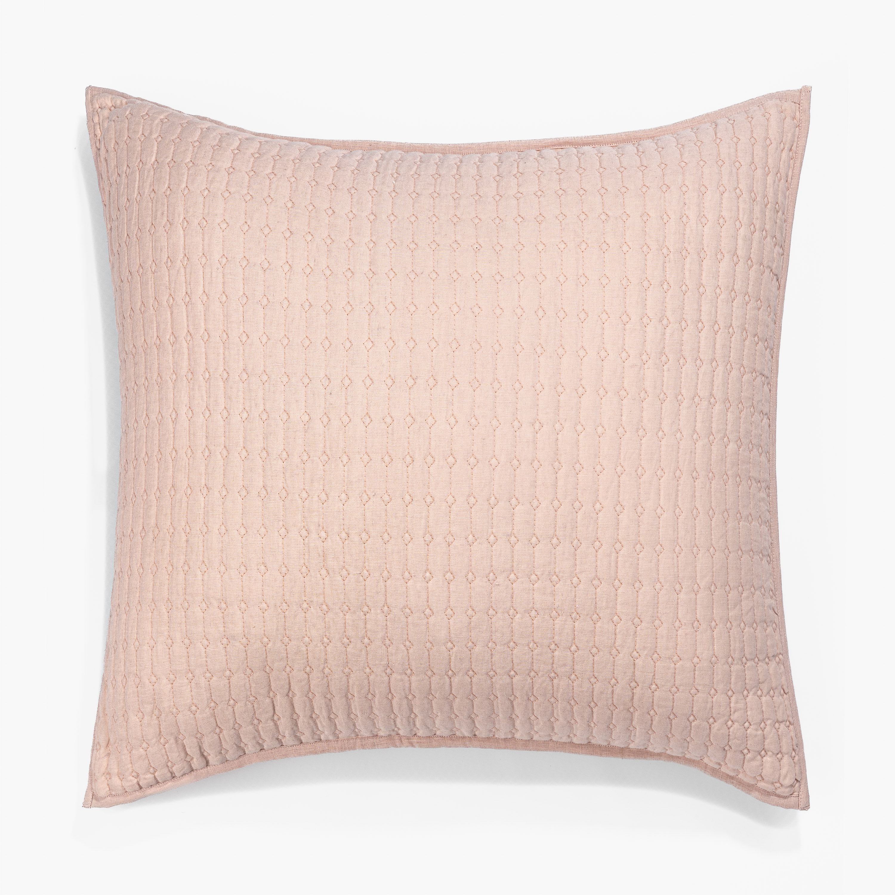 Catalina is constructed of 100% fine linen front and back, and machine quilted in a tight block pattern. The scale of the pattern provides for a structured finish that takes on a modern edge.