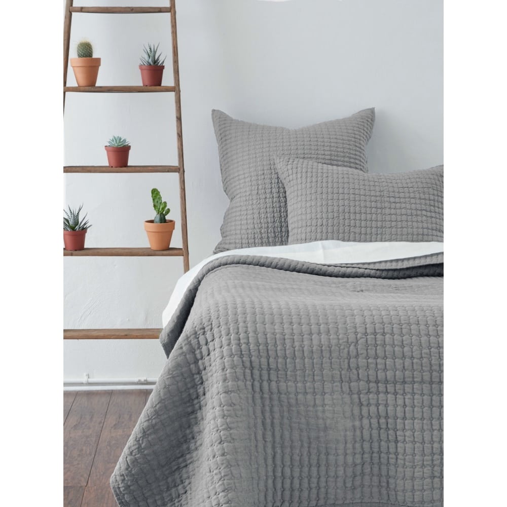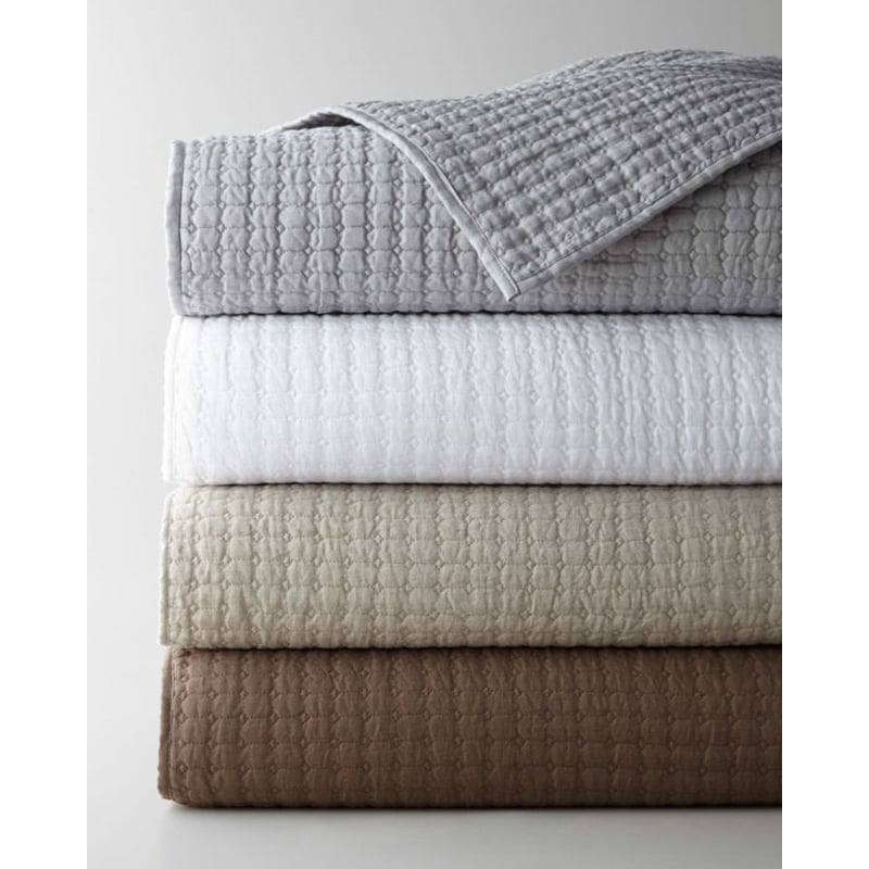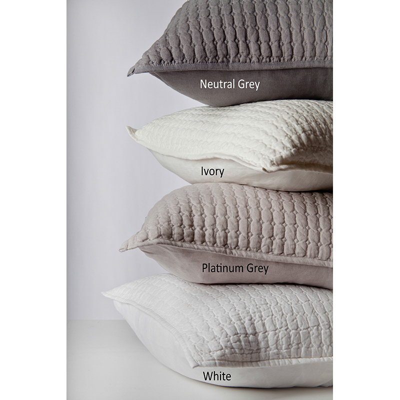 Catalina is constructed of 100% fine linen front and back, and machine quilted in a tight block pattern. The scale of the pattern provides for a structured finish that takes on a modern edge.