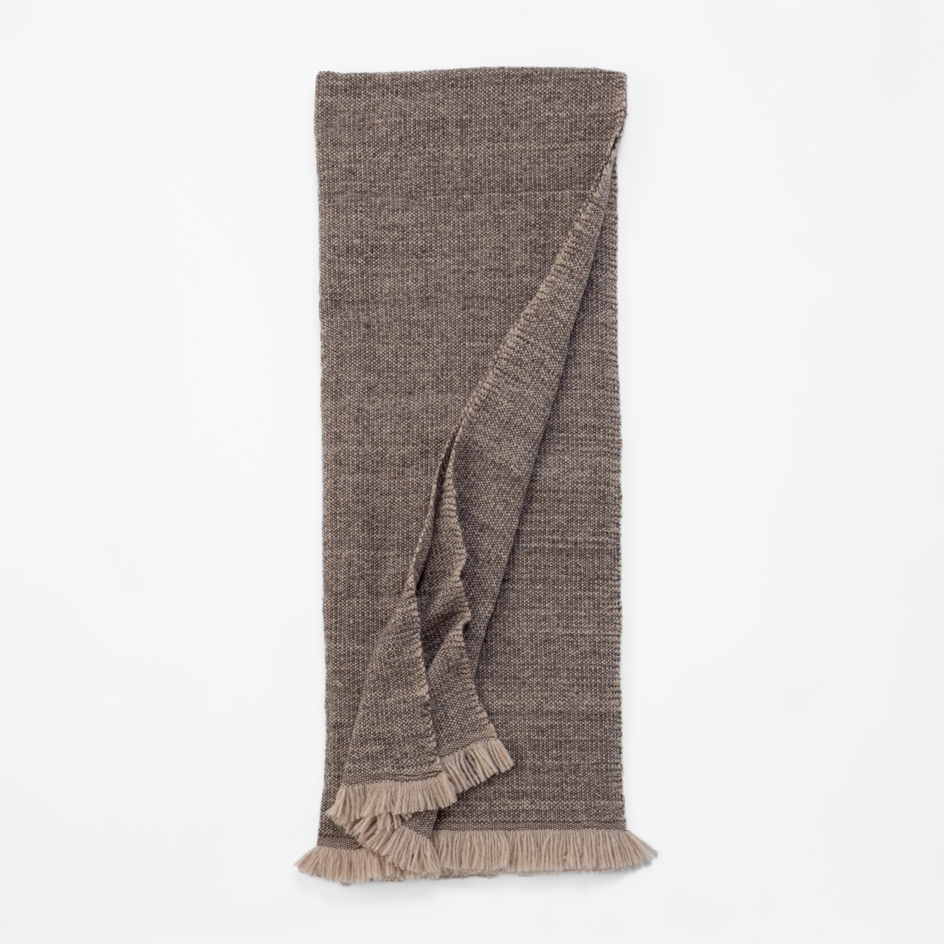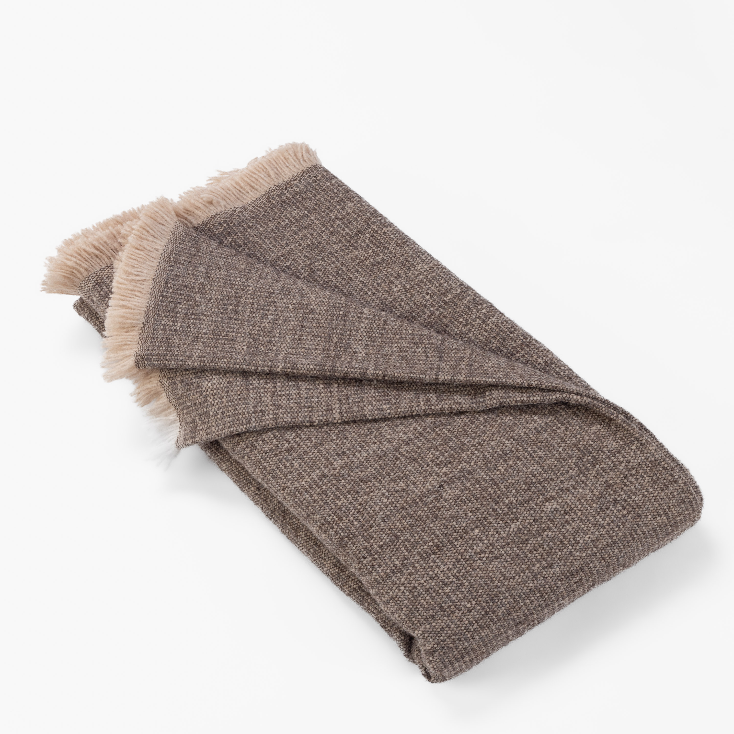 Celeste is a luxurious blanket woven from lofty alpaca in a tonal chambray, blending airy softness with rich visual depth. Naturally insulating yet breathable, alpaca fiber offers exceptional warmth without weight, making it ideal for year-round comfort. The subtle interplay of tones adds dimension to the weave, while the plush wheat-colored fringe provides a warm, inviting finish.