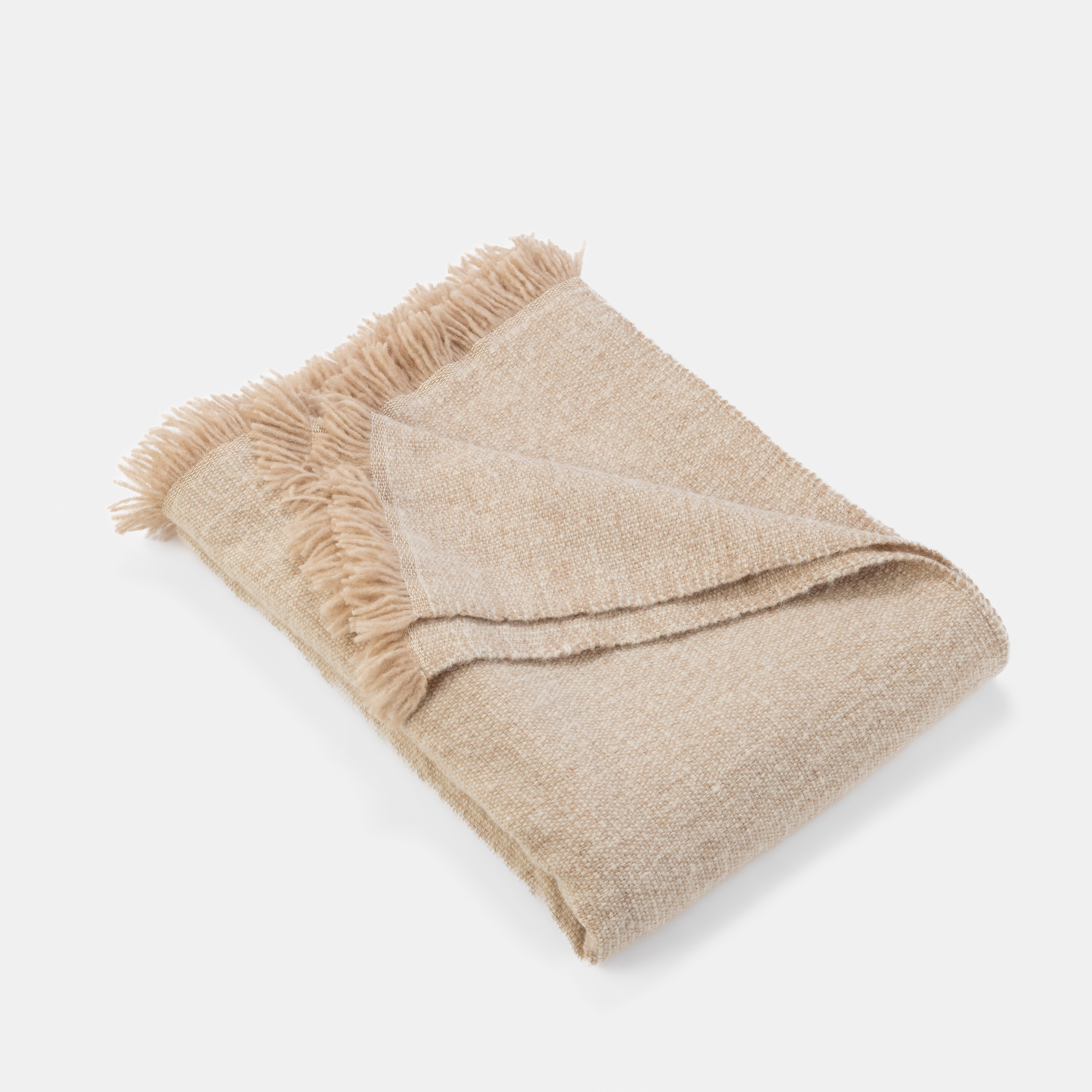 Celeste is a luxurious throw woven from lofty alpaca in a tonal chambray, blending airy softness with rich visual depth. Naturally insulating yet breathable, alpaca fiber offers exceptional warmth without weight, making it ideal for year-round comfort. The subtle interplay of tones adds dimension to the weave, while the plush wheat-colored fringe provides a warm, inviting finish.