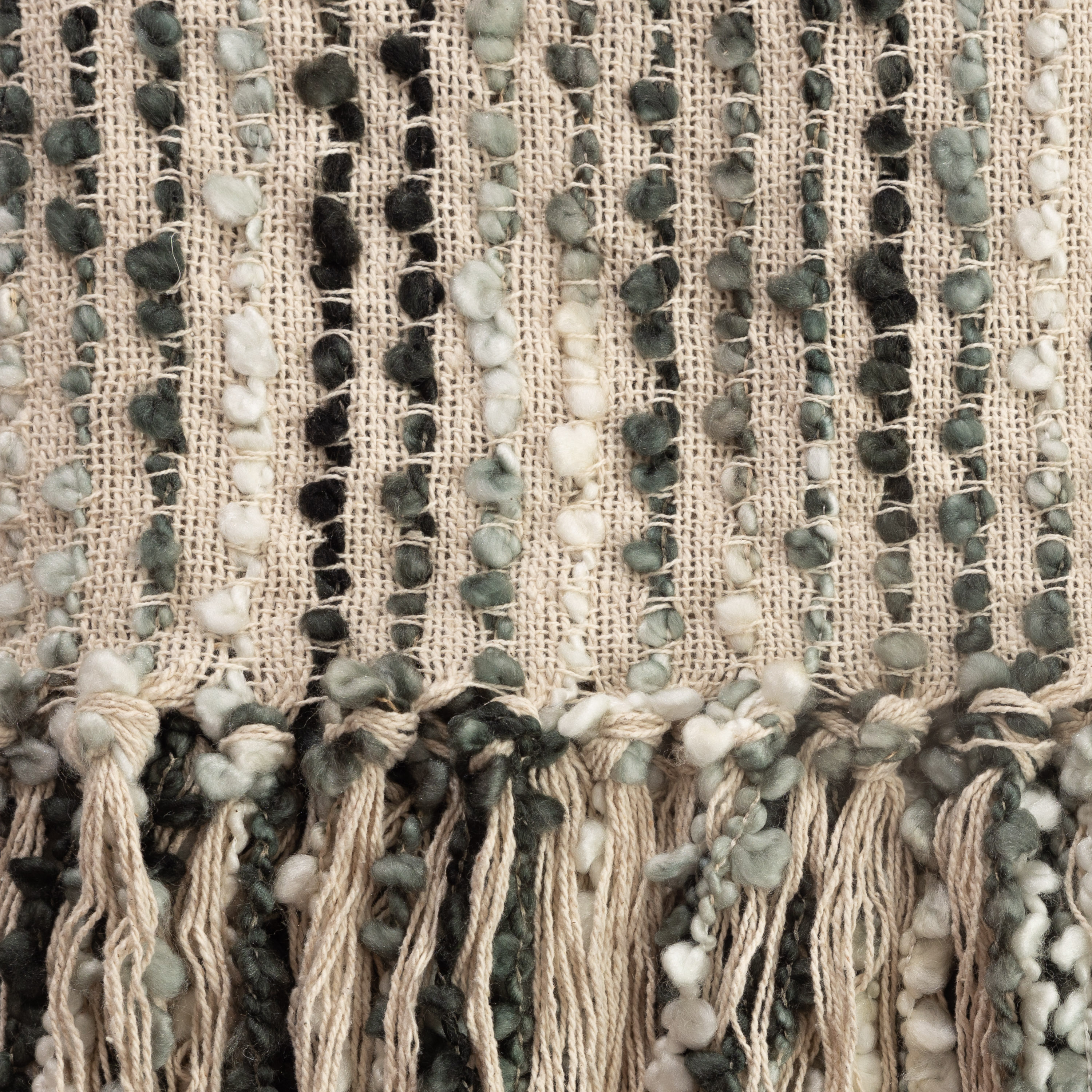 Fine cotton fibers are interwoven with a plush space dyed boucle yarn for dramatic texture and soft hand feel.