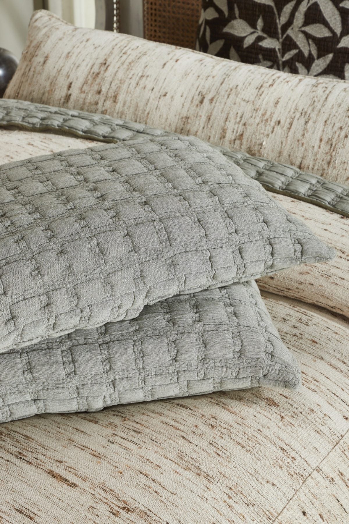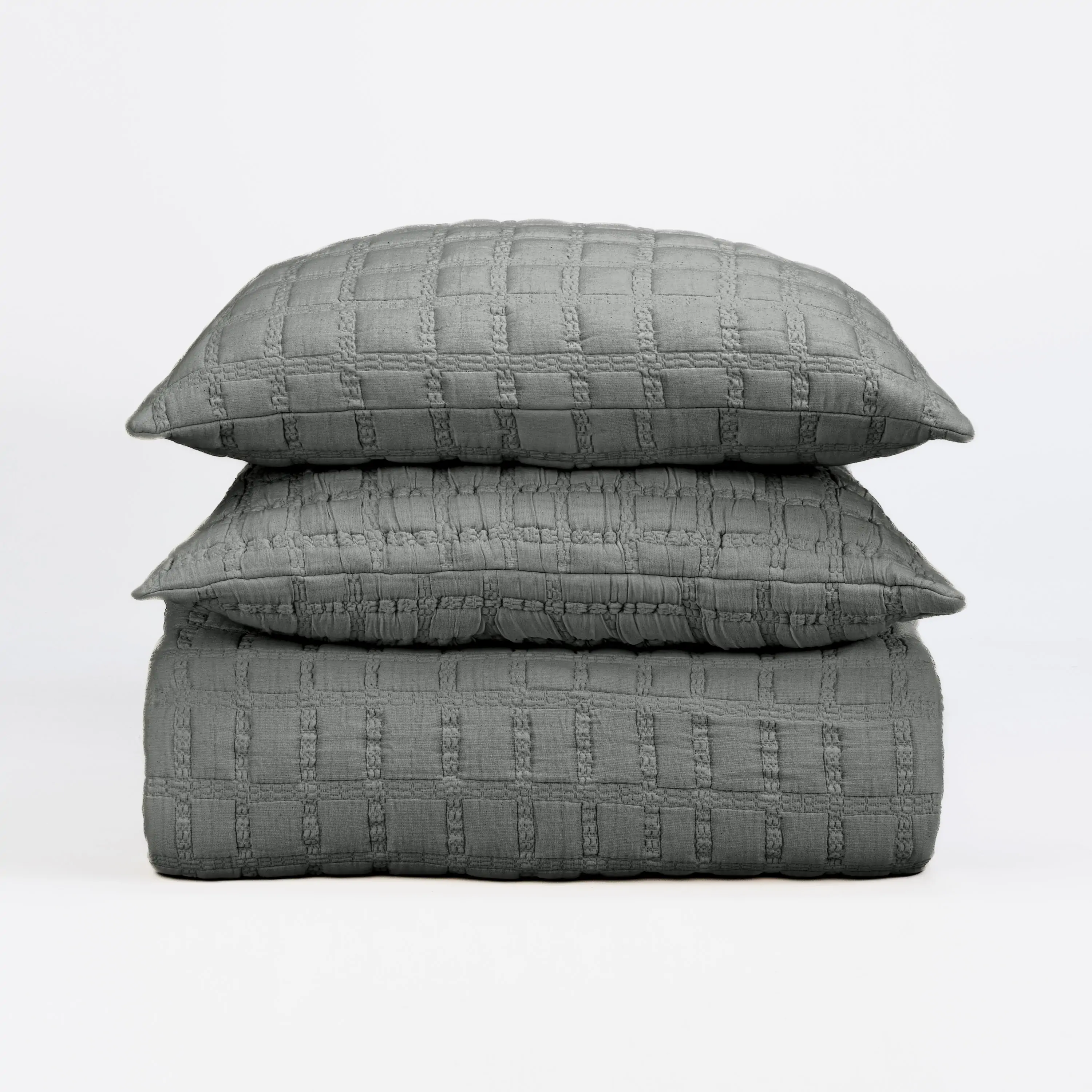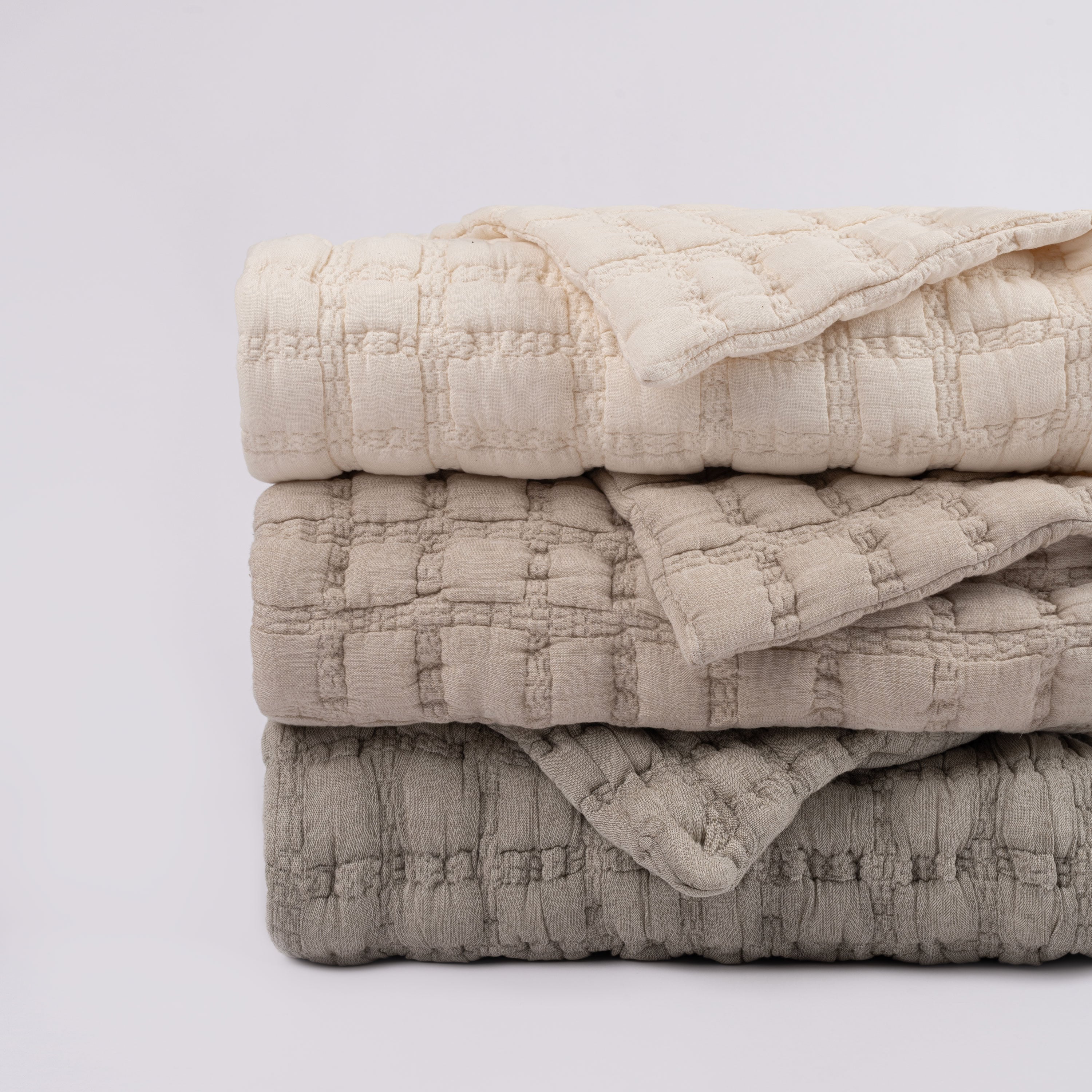 The Claudia collection is a tactile masterpiece that redefines comfort with a touch of modern flair. This quilt features a captivating grid of pillowy blocks, meticulously crafted from the softest cotton. Each block serves as a miniature oasis, inviting you to sink into a world of plush serenity.