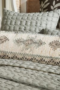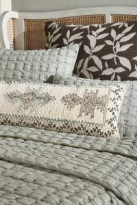 Bound with a striking contrast flange, this quilt transcends the ordinary, adding a bold and stylish edge to its inviting softness. The combination of fluffy blocks and the eye-catching flange creates a visually dynamic quilt that effortlessly becomes the focal point of any bedroom. Shams are finished with a knife edge style without a flange