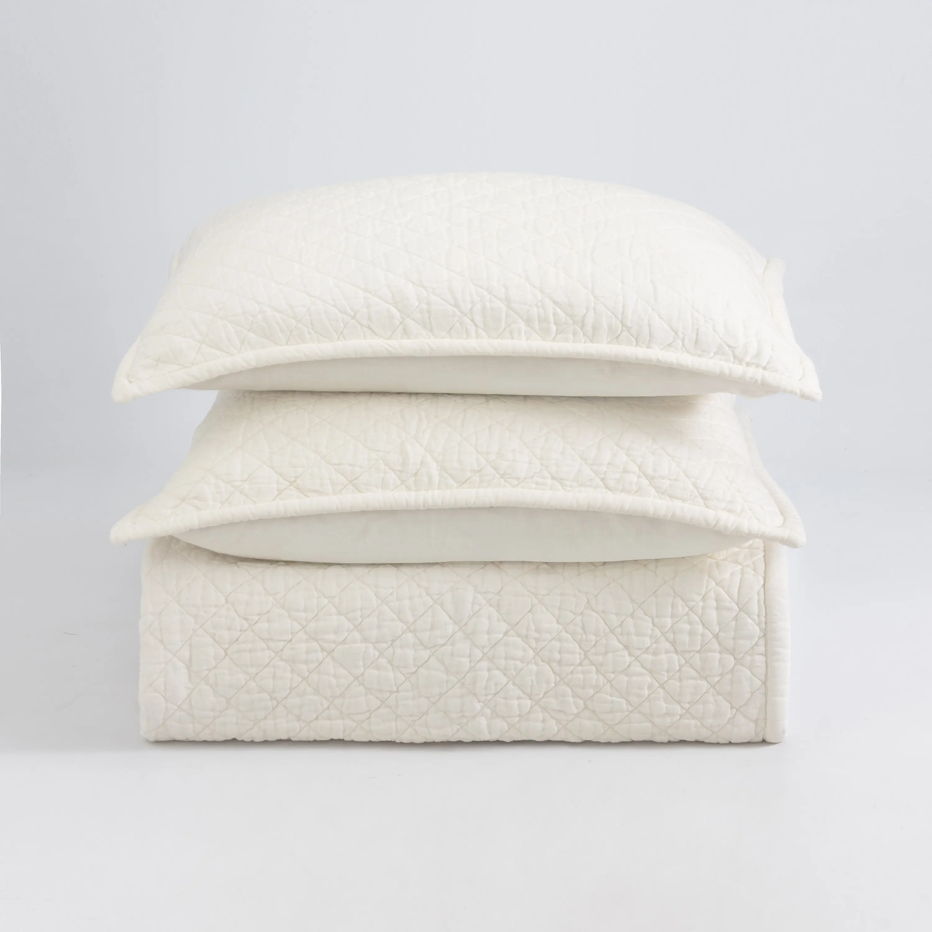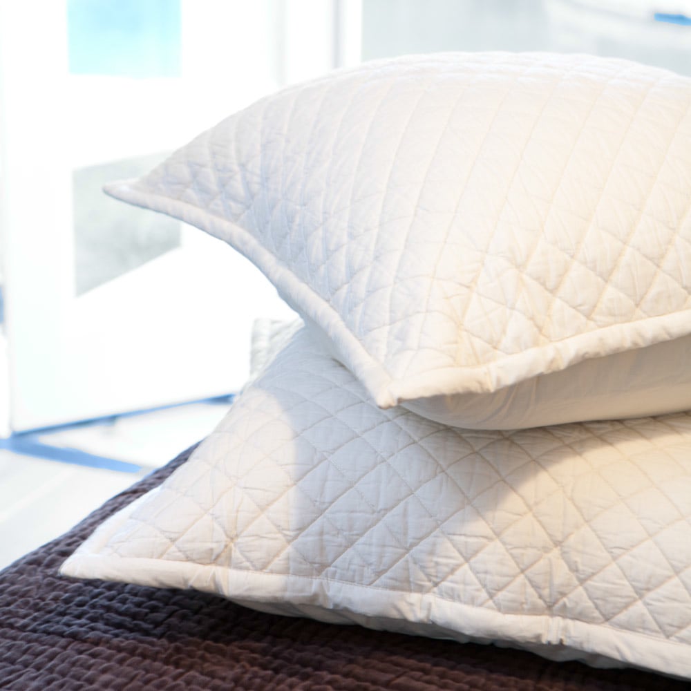 The hand-made excellence of the Clayton set is evident in the careful detailing of cotton filled flanges, impeccable geometric stitch work and flawless edging. Only the finest attention to detail is able to support such beautiful drape and feel in our Clayton Quilt.