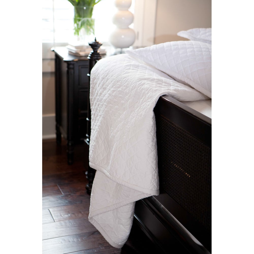 Constructed of fine cotton and quilted in a classic diamond pattern with padded piped edge, the Clayton quilt redefines basic.