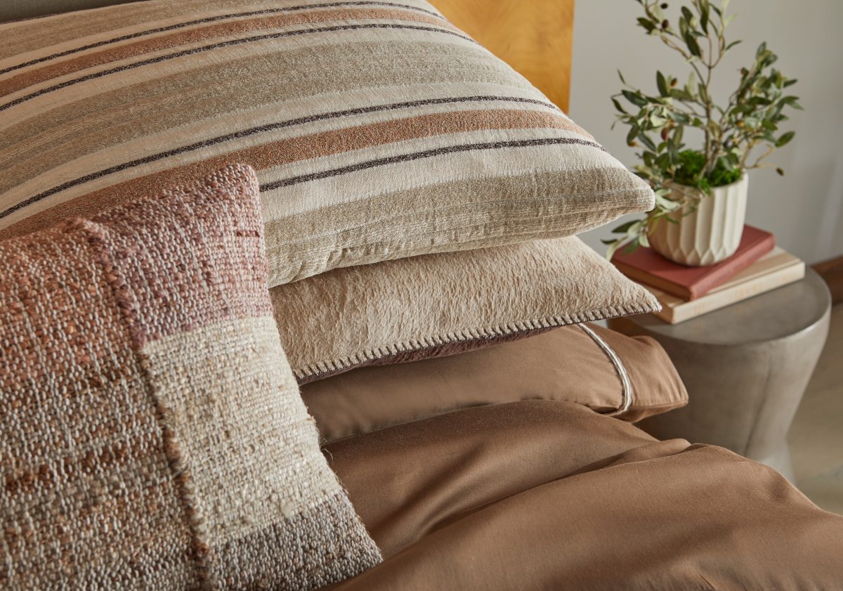 A thoughtfully layered ensemble combining the refined texture of the Ferguson Coverlet with the rich depth of the Culver Coverlet in Cocoa. Finished with coordinating shams and the Arthur Bolster for added dimension, this set creates a warm, tailored bed with effortless sophistication.