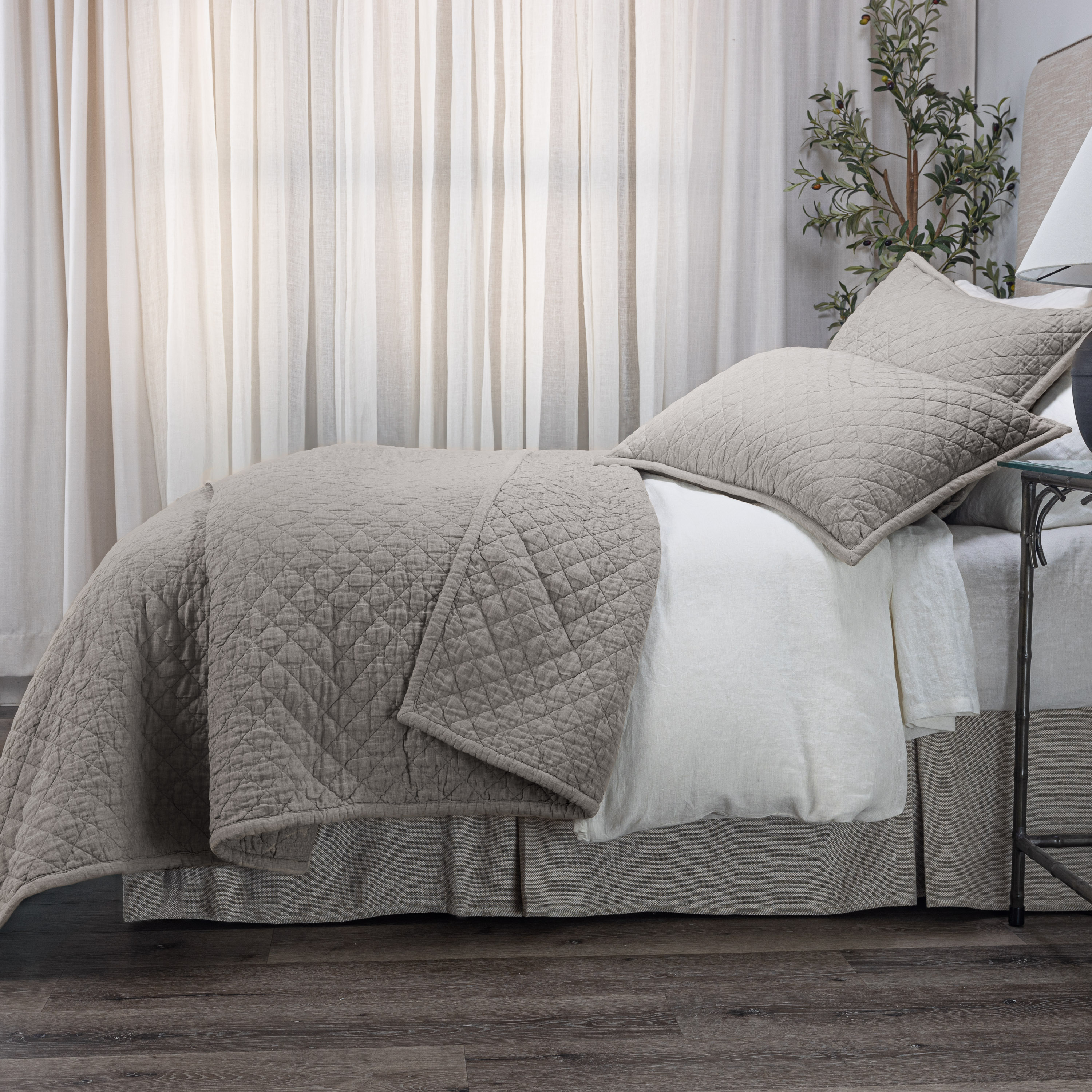 Dale is constructed of 100% fine linen front and back. Machine quilted in a classic diamond pattern and finished with a padded piped edge give this collection a refined air.
